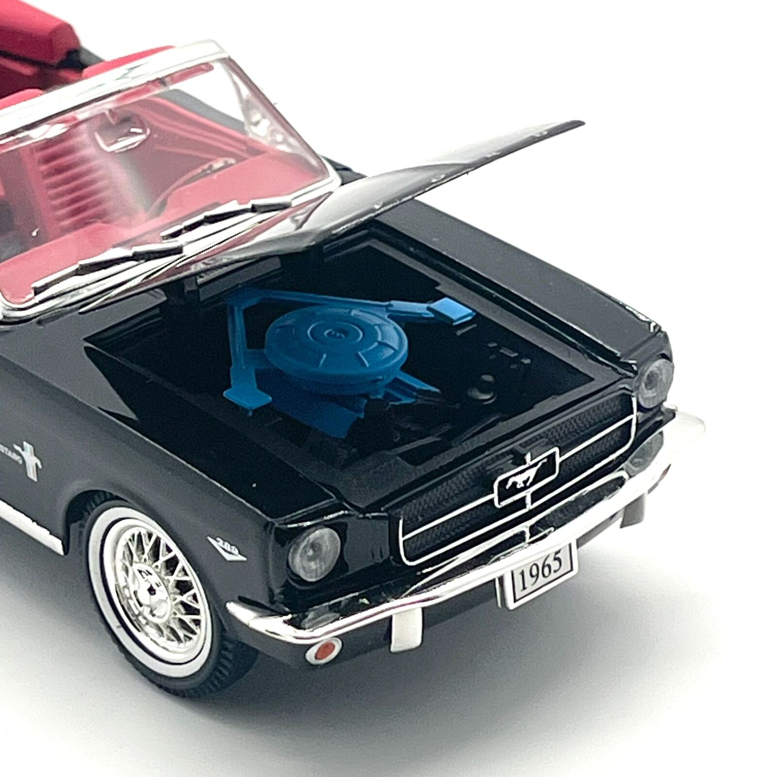 This detailed 1965 Ford Mustang Convertible diecast model by The National Motor Museum Mint is a finely crafted collectible, presented in a classic Raven Black finish with a striking red interior. Produced in 1:32 scale, this model captures the iconic styling of the original Mustang, making it an excellent addition for collectors and enthusiasts of classic American automobiles.