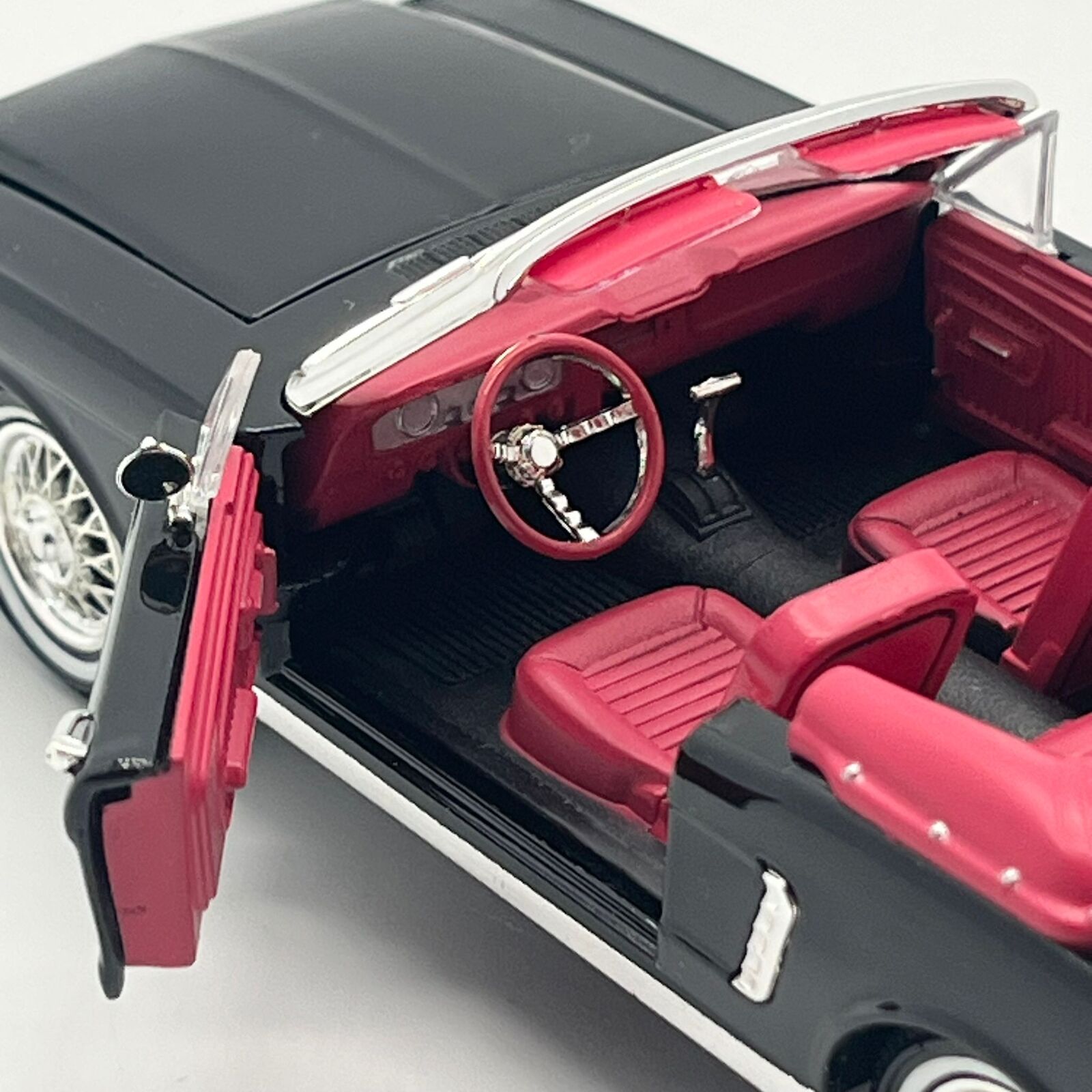1965 Ford Mustang Convertible 1:32 Diecast Raven Black Red Interior
