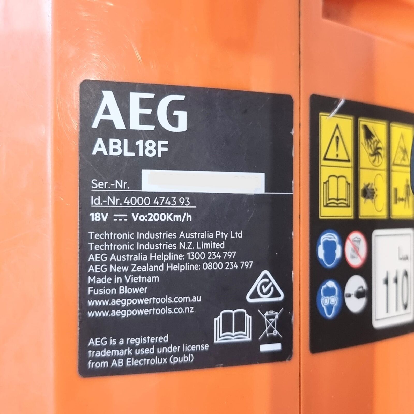 AEG ABL18F 18V Cordless Blower 200km/h Air Speed Skin Only