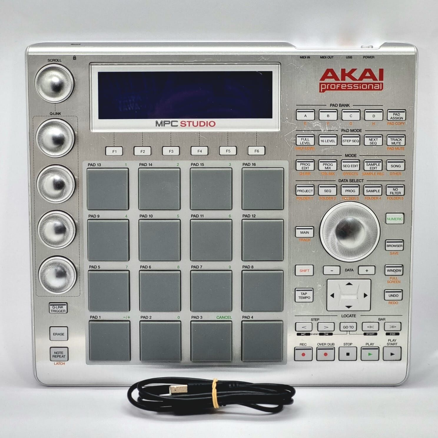 The Akai Professional MPC Studio is a powerful, compact MIDI controller designed for music producers, beatmakers, and DJs who want the classic MPC workflow in a portable form factor. Featuring 16 velocity-sensitive pads for expressive drumming and finger drumming, the MPC Studio offers intuitive control with multiple function buttons and a large display screen for easy navigation. This unit does not include any preloaded software programs, allowing you to use your preferred DAW or production software seamlessly. Perfect for studio or live performance, it connects via USB and supports MIDI in and out.