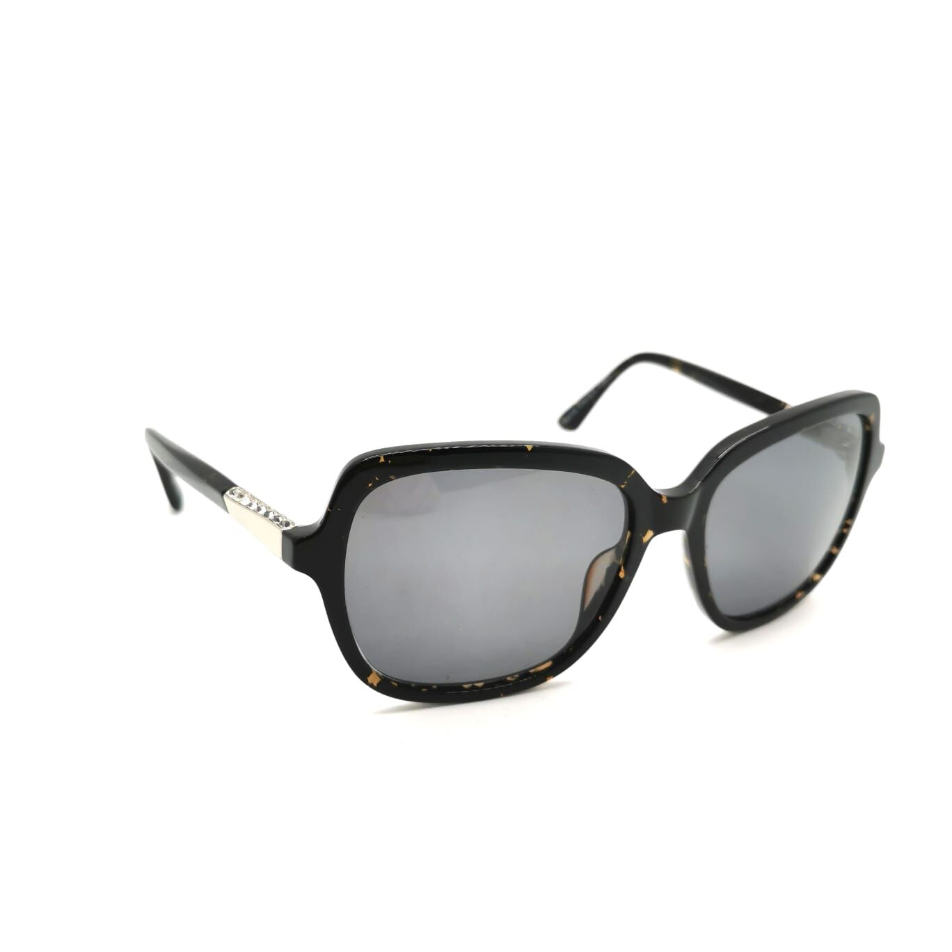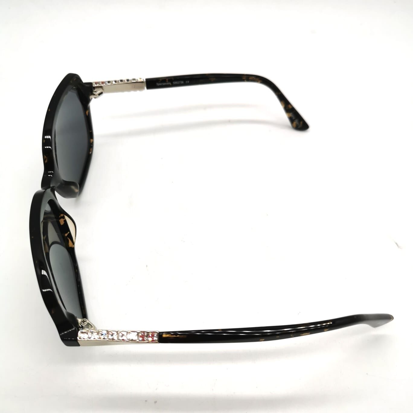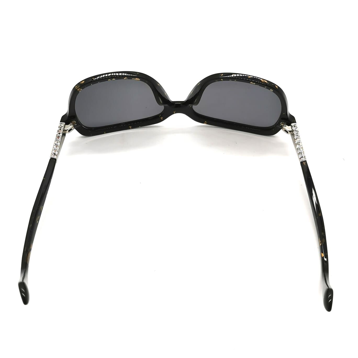 - Temple Detail: Silver-tone metal with inset clear crystals