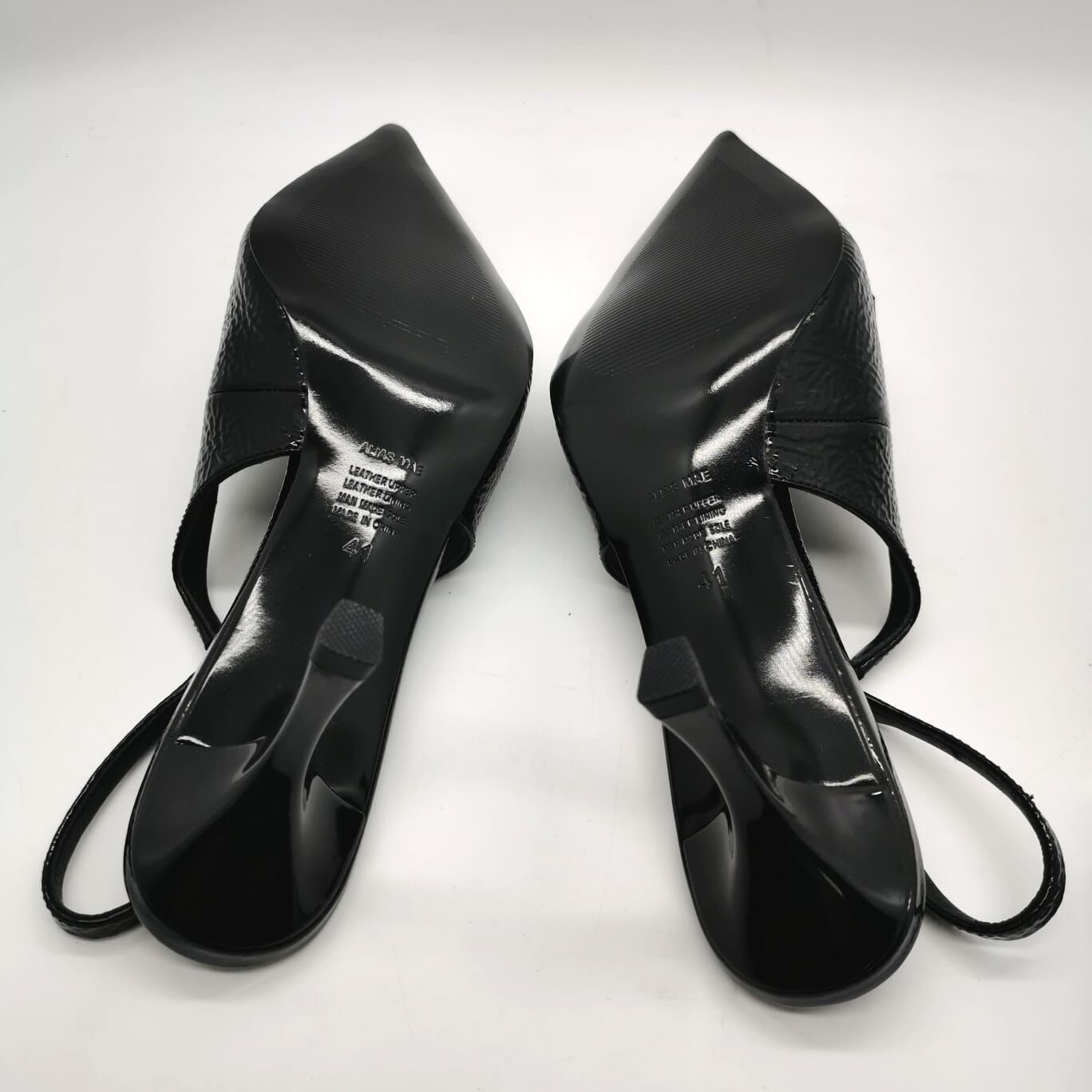 Alias Mae Amber Black Crinkle Patent Leather Slingback Shoes Size 41
