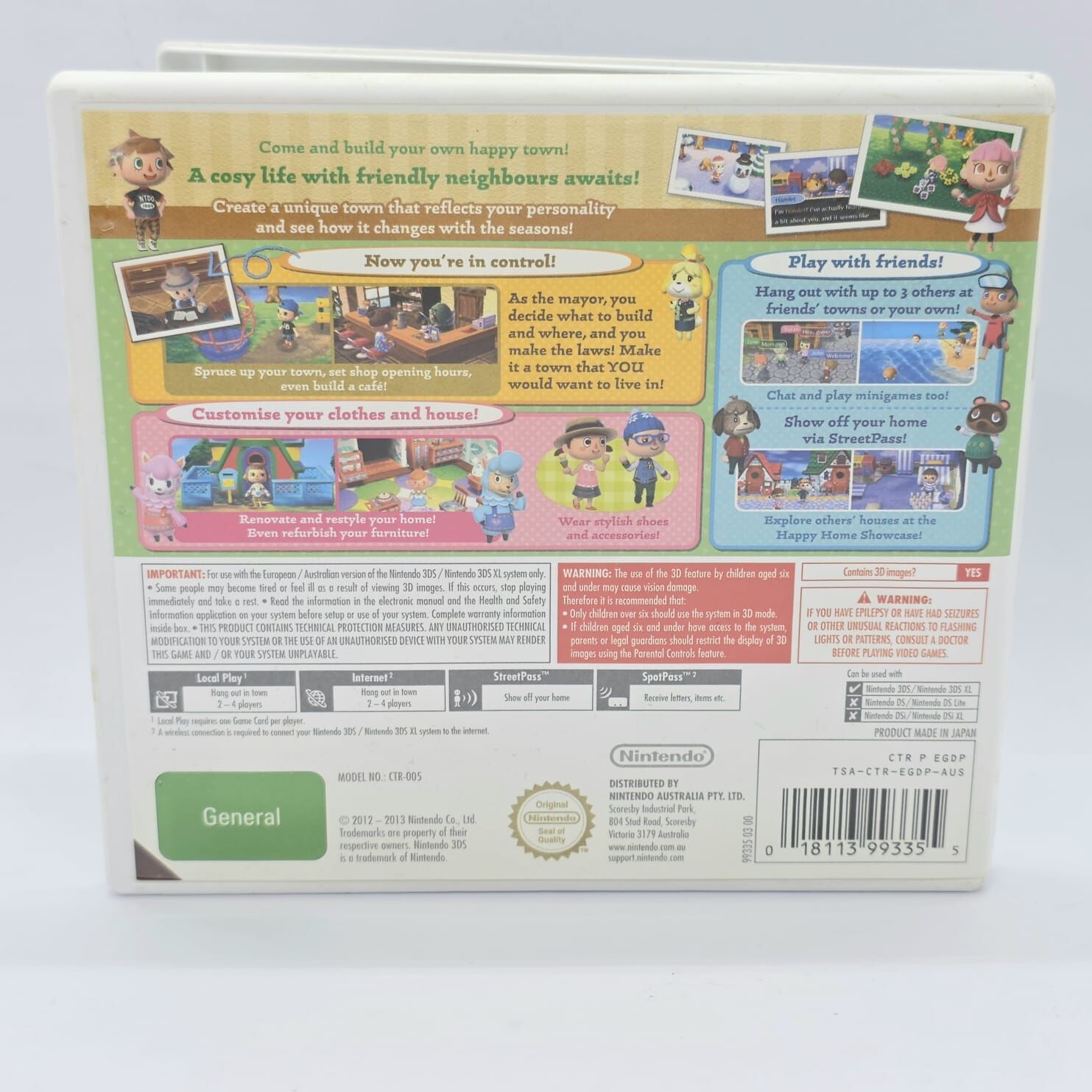 Customise your town, interact with adorable animal villagers, go fishing, catch bugs, decorate your home, and take part in fun seasonal events. Whether you’re designing your dream town or just unwinding with relaxing gameplay, Animal Crossing: New Leaf offers endless possibilities!