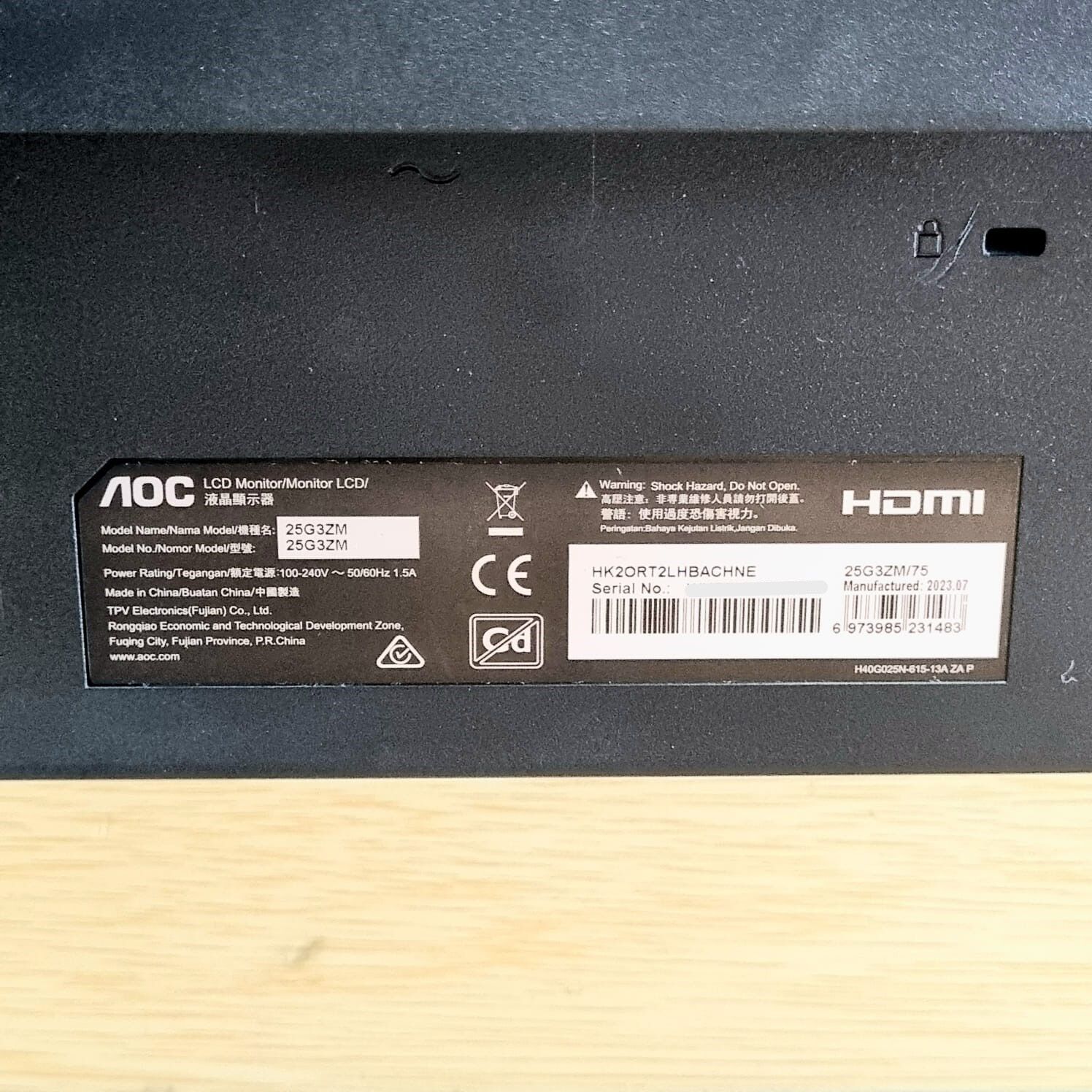 AOC 25G3ZM 24.5 Inch 240Hz 1ms FHD VA Gaming Monitor HDMI x2 DisplayPort