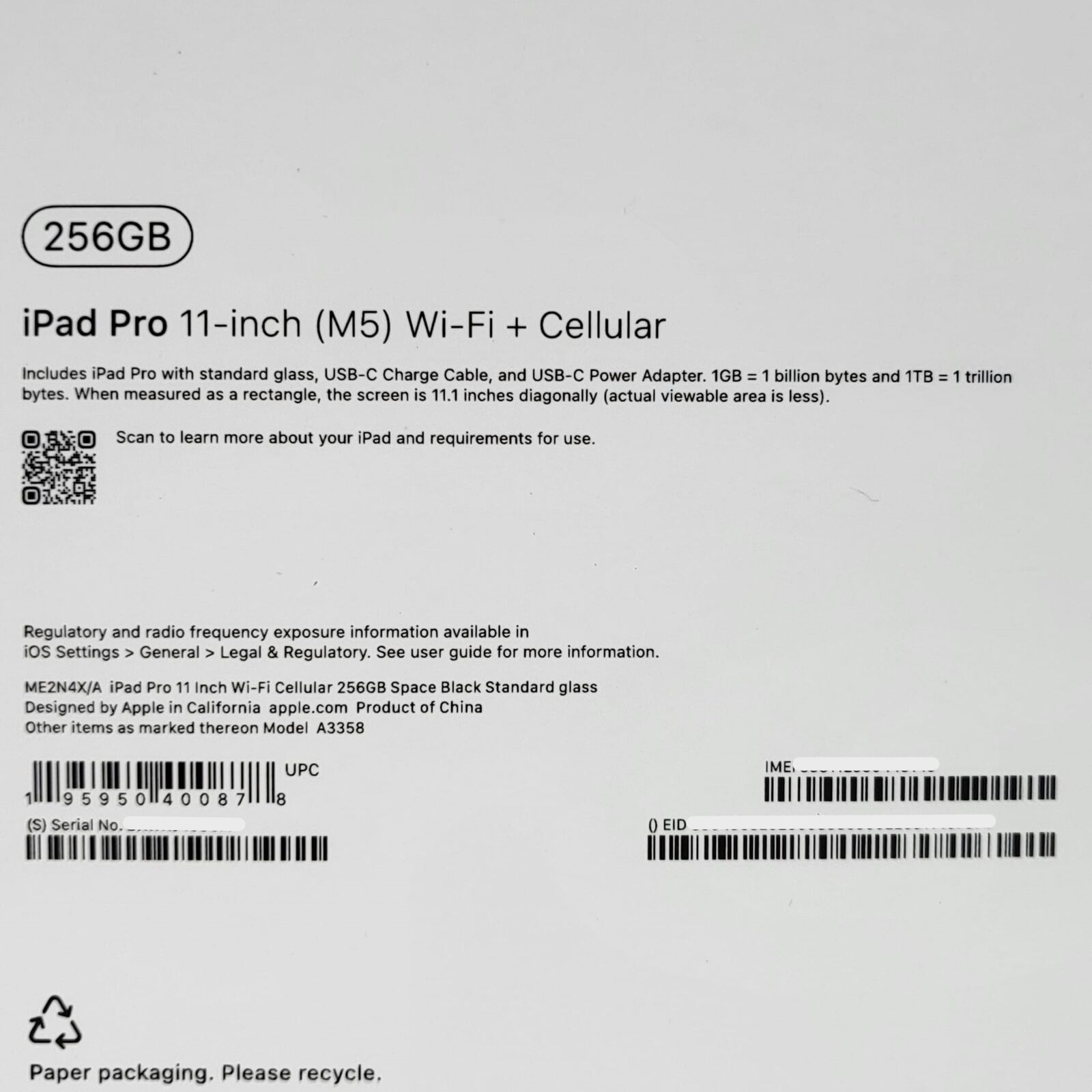 - Model: Apple iPad Pro 11-inch (M5) ME2N4X/A