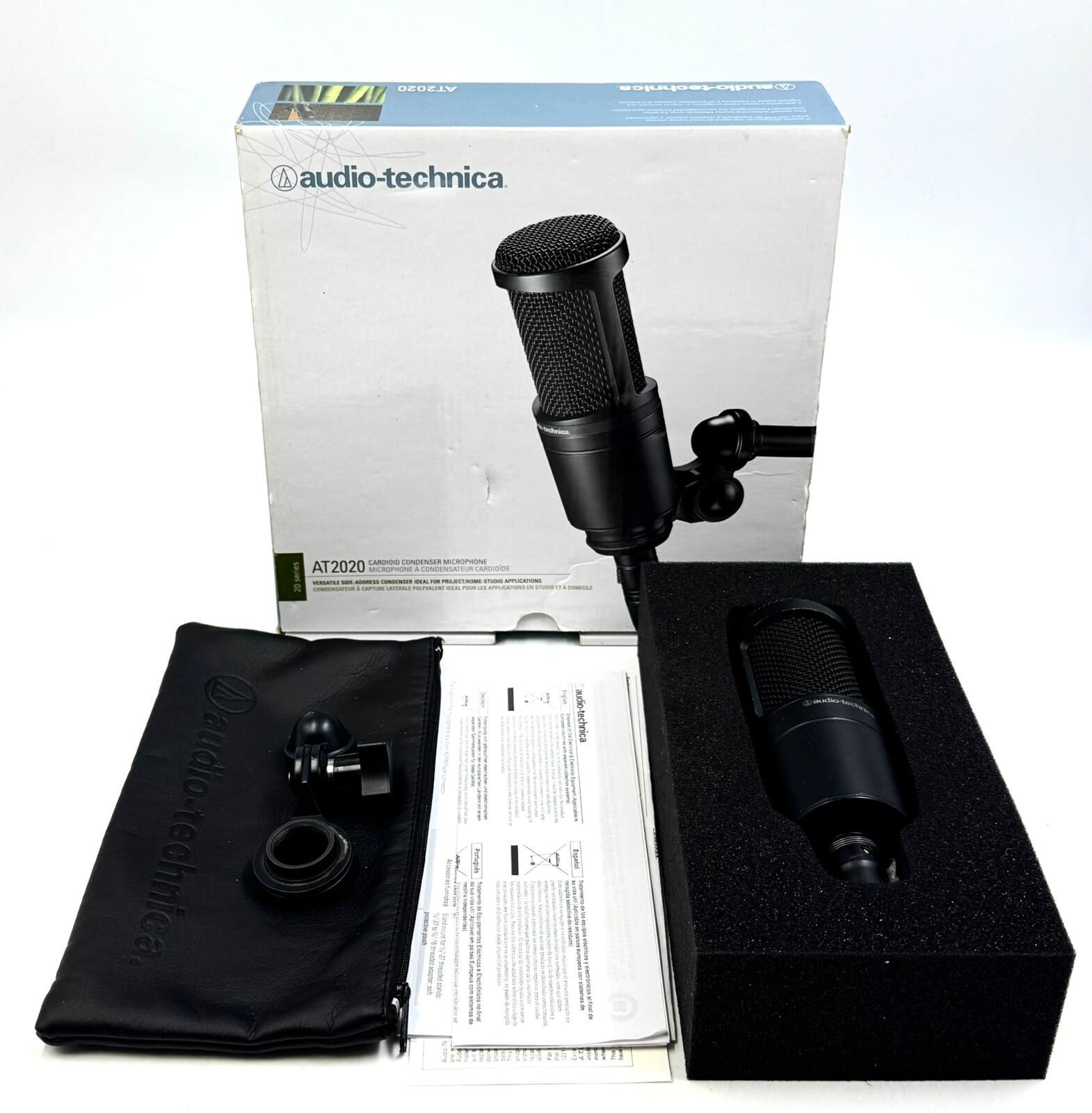 The Audio-Technica AT2020 sets the price/performance standard for side-address studio condenser microphone technology. Ruggedly built for lasting performance, the AT2020 offers a wide dynamic range and handles high SPLs with ease. It is specifically designed to provide the versatile performance required in project and home studio applications.
