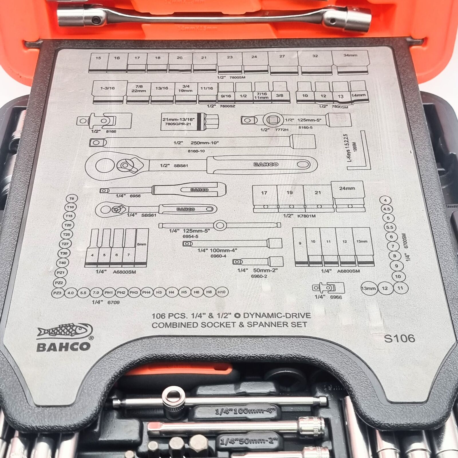 Bahco S106 106pcs 1/4 and 1/2 Inch Dynamic Driver Combined Socket Spanner Set