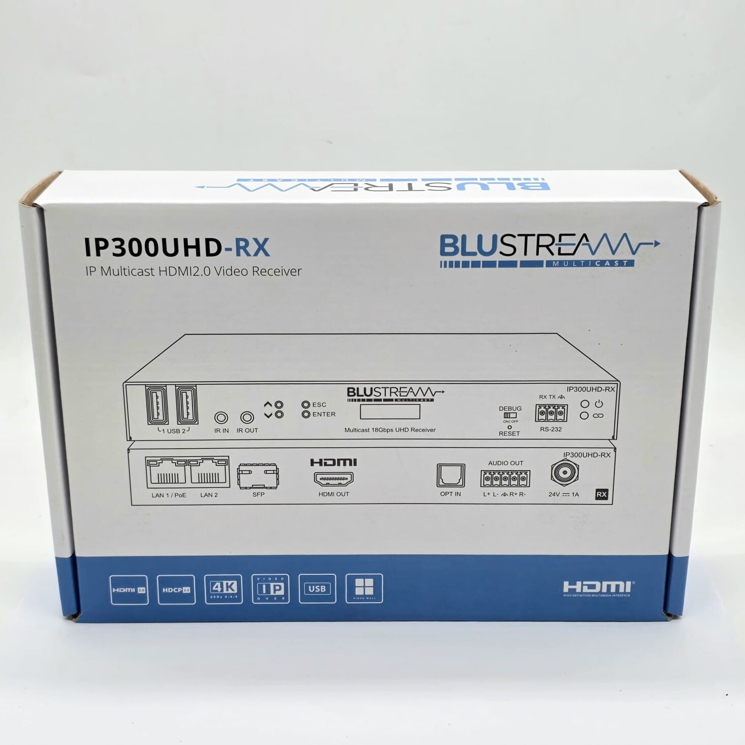 The Blustream IP300UHD-RX is a professional-grade 4K UHD IP video receiver designed for scalable AV-over-IP installations. Supporting 4K 60Hz (4:4:4) video over standard network infrastructure, this receiver delivers ultra-low latency performance using IP multicast technology.