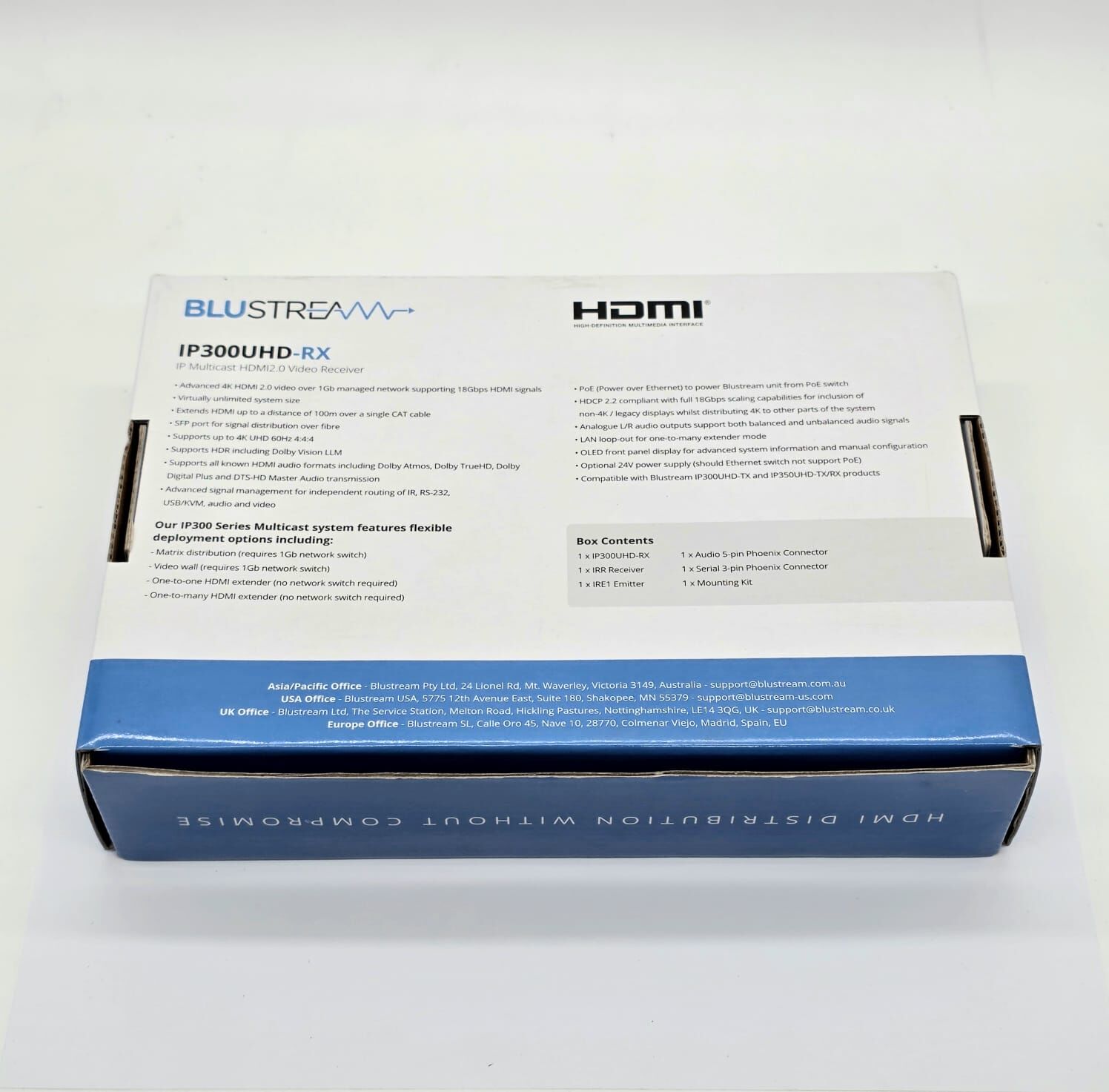 Engineered for commercial and enterprise environments, the IP300UHD-RX supports HDMI 2.0, HDCP 2.2, and advanced network distribution, making it ideal for digital signage, control rooms, education, hospitality, and corporate AV systems. When paired with compatible Blustream IP transmitters, it enables flexible matrix-style video routing without the limitations of traditional HDMI cabling.