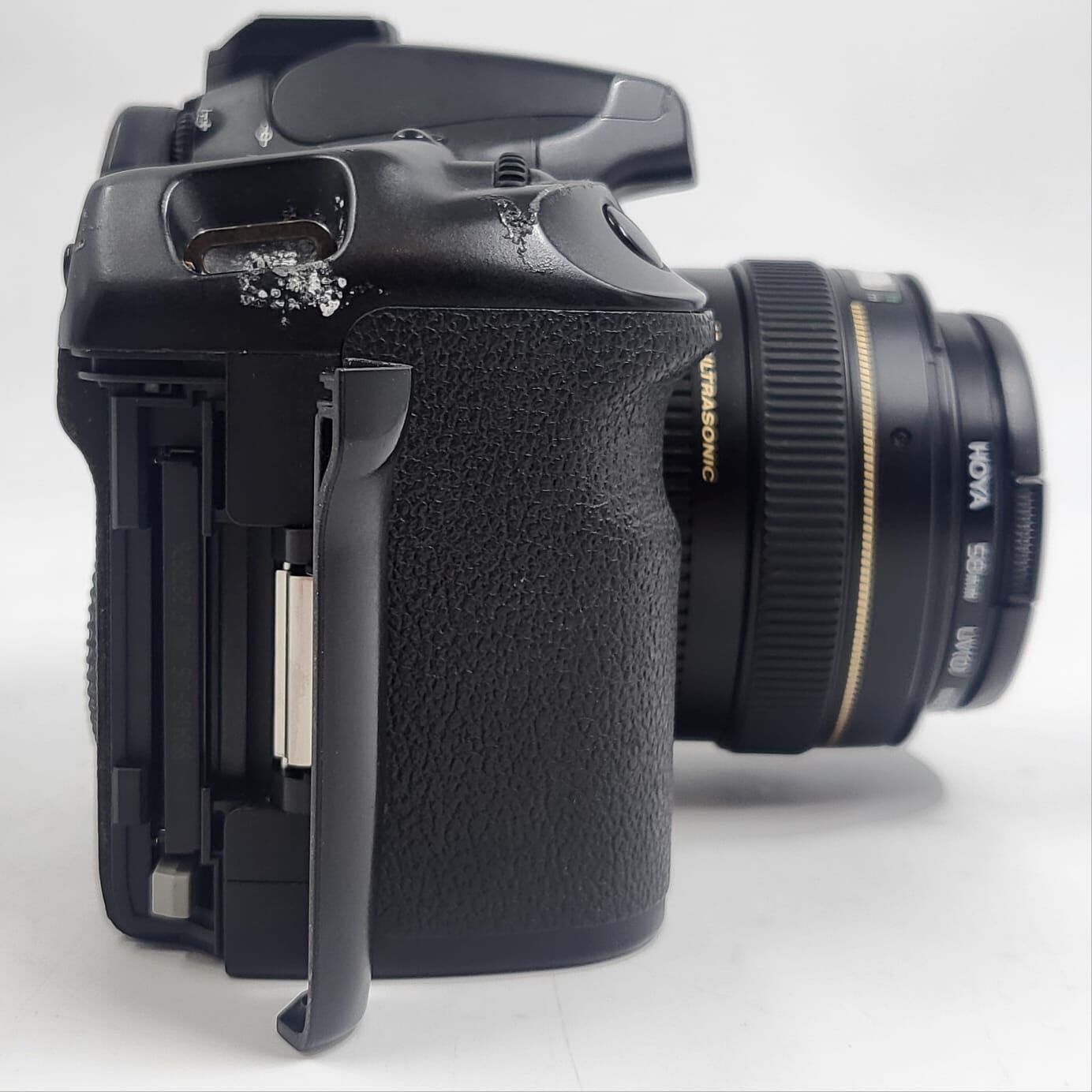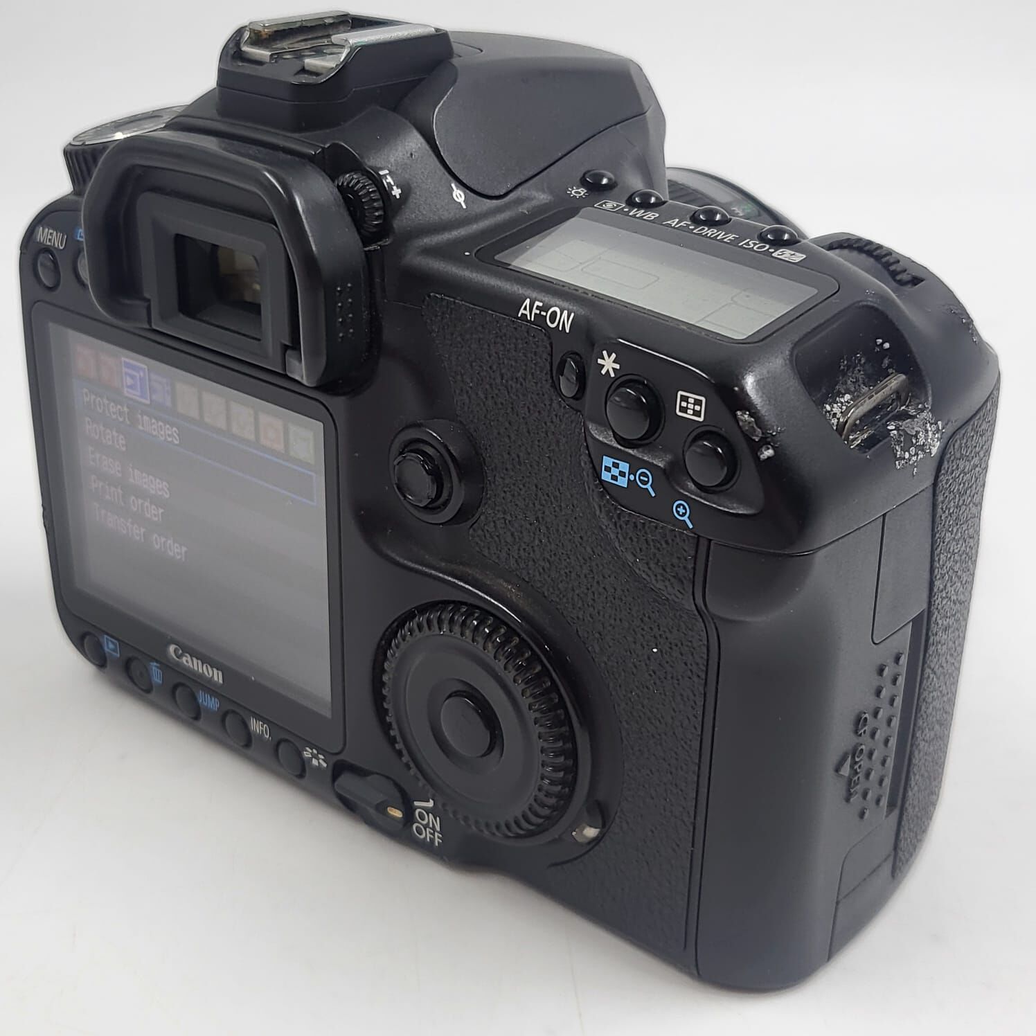 PERIPHERAL PORT COVER IS MISSING, SIGNS OF WEAR, ALUMINIUM IS FLAKING OFF THE CAMERA BODY IN SOME PLACES, MINOR SCRATCHES ON THE SCREEN.