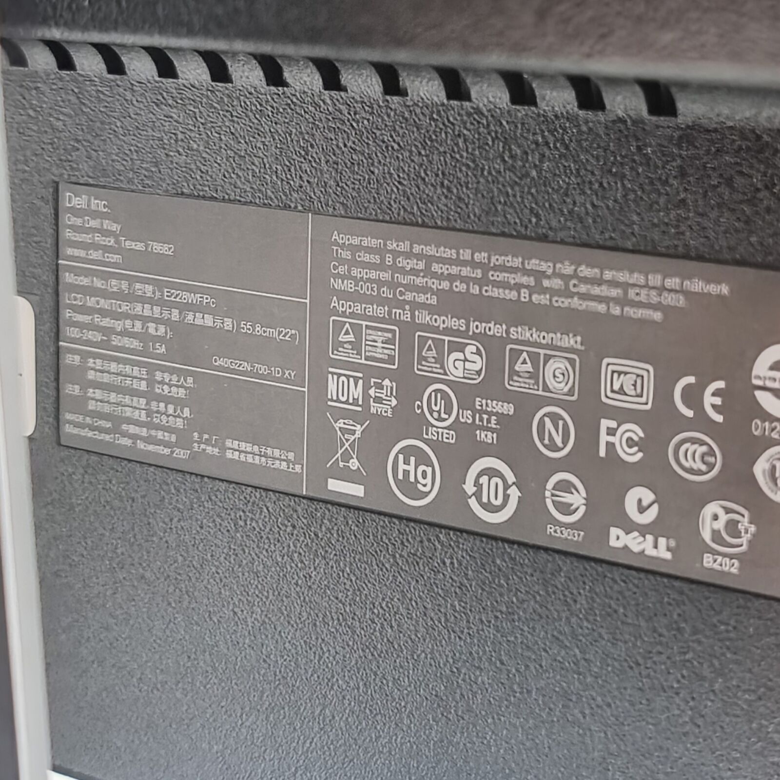 Dell E228WFPc 22 Inch LCD Monitor DVI VGA Widescreen Display
