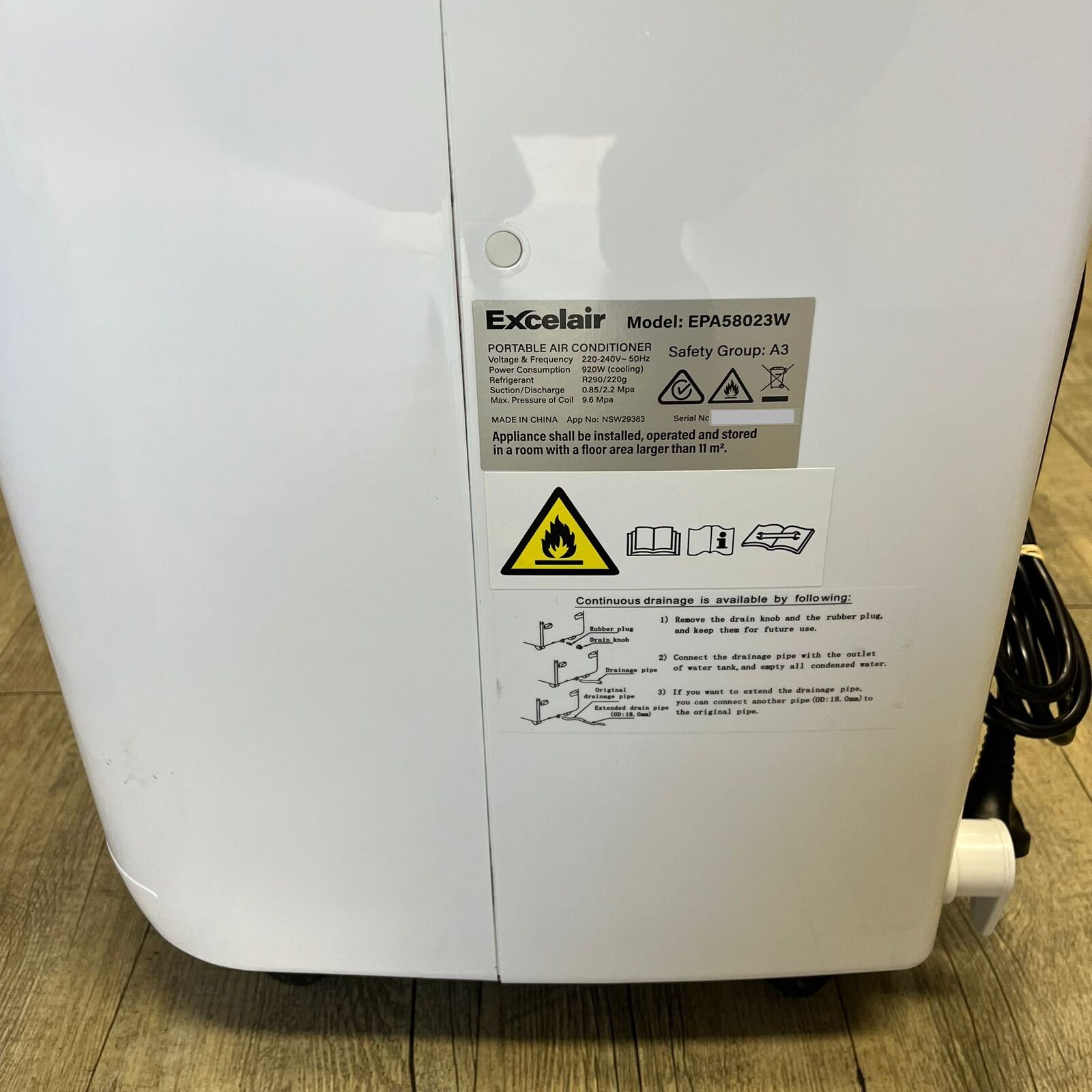 Excelair 2.3kW WiFi Portable Air Conditioner EPA58023W White with Accessories