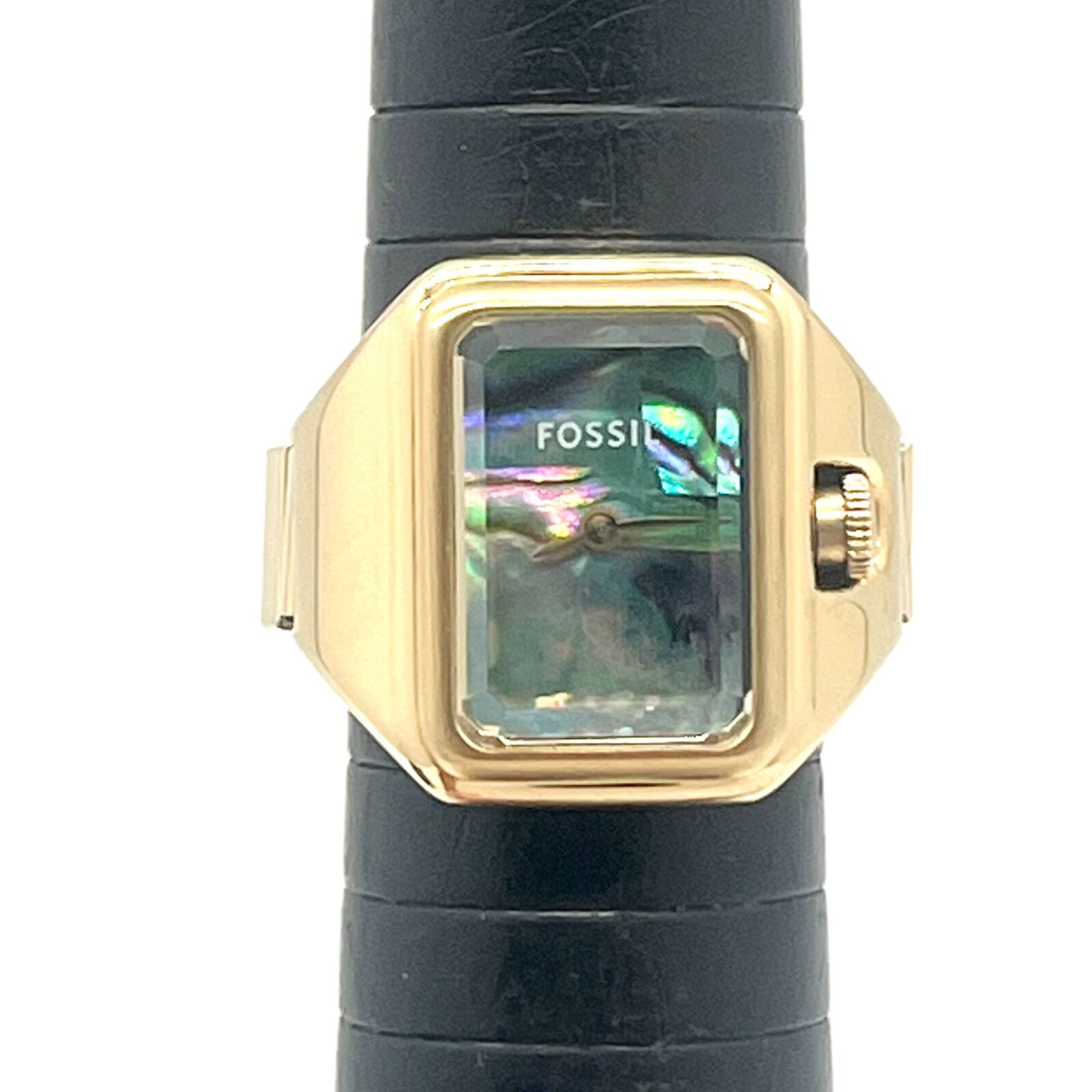 Elevate your accessory collection with the Fossil Raquel Ring Watch ES5411, a refined fusion of jewellery and timekeeping. This elegant analogue watch ring features a classic rectangular case paired with a striking abalone shell dial, offering a subtle iridescent finish that reflects light beautifully.