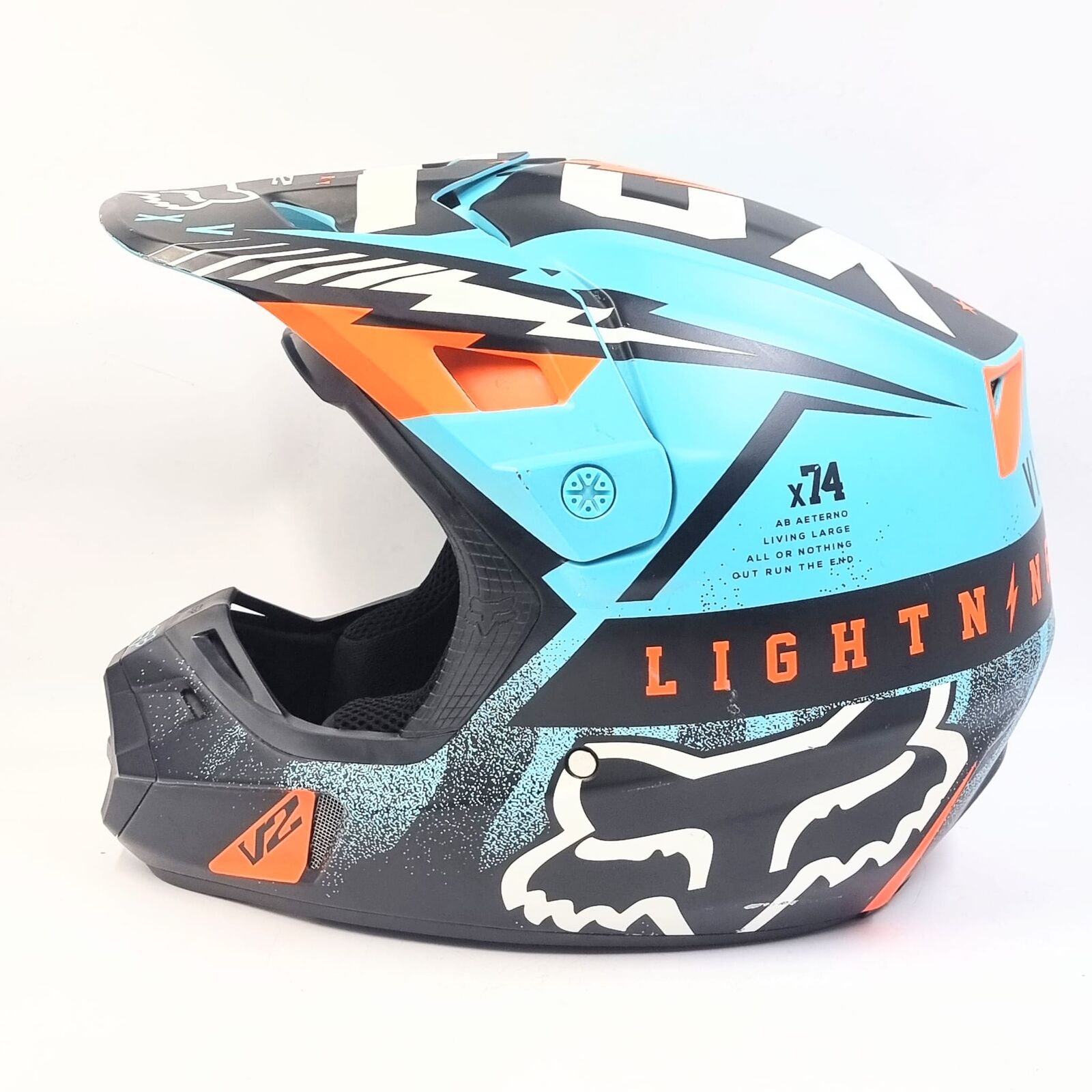 Fox V2 Vicious Army MX Helmet Aqua Orange XL 61-62cm Fiberglass Shell