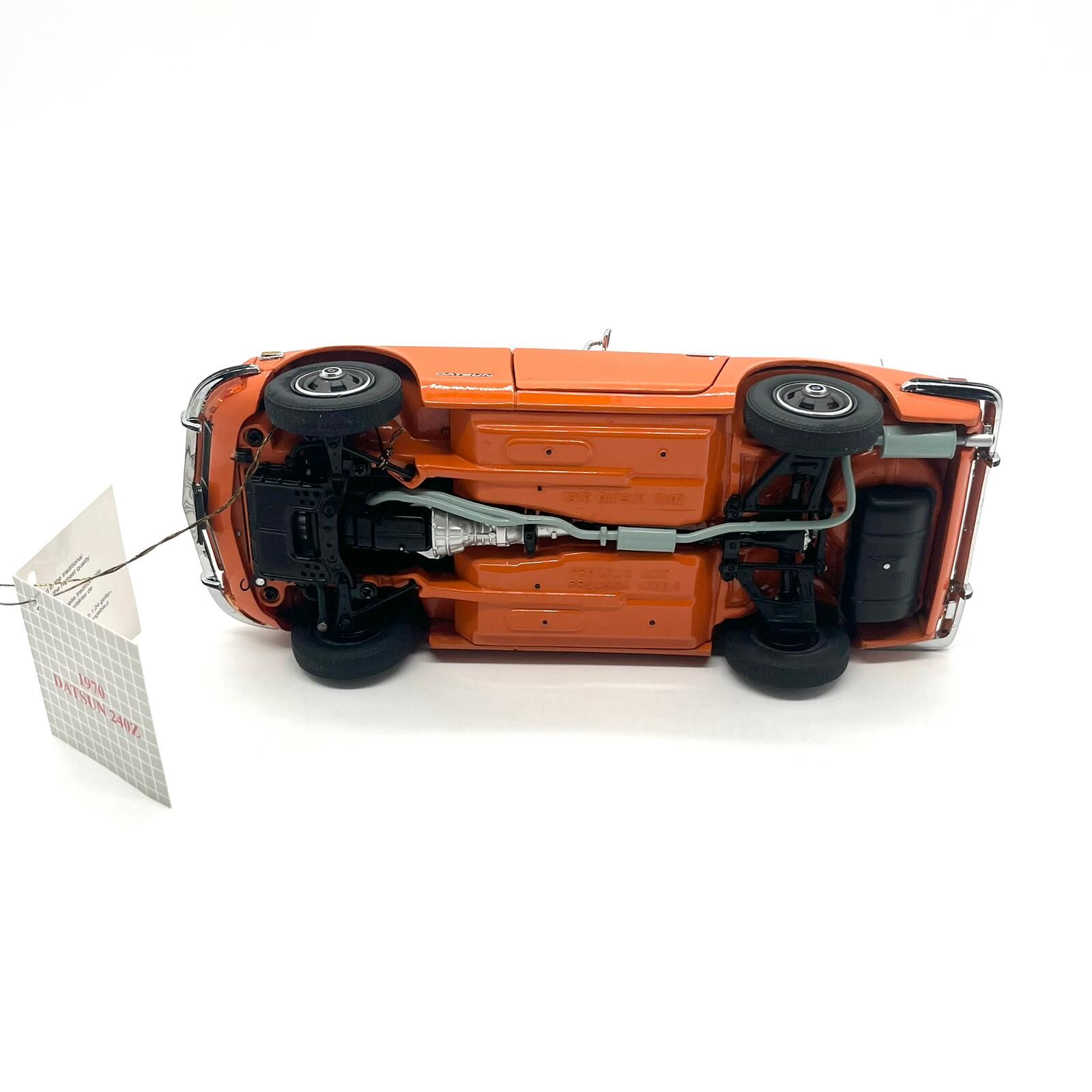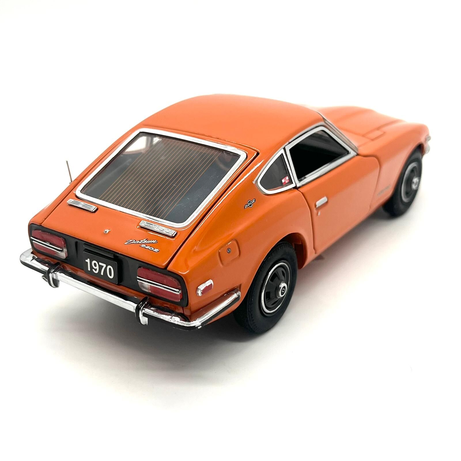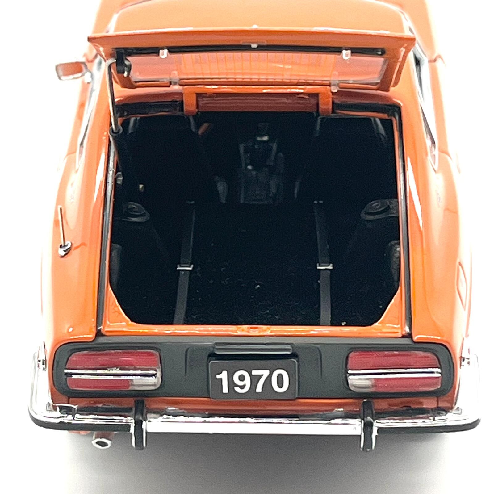 This Franklin Mint 1970 Datsun 240Z diecast model captures the iconic Japanese sports car in exceptional 1:24 scale detail. Finished in vibrant orange, this precision-crafted collectible showcases authentic exterior styling, realistic interior detailing, and high-quality diecast construction.