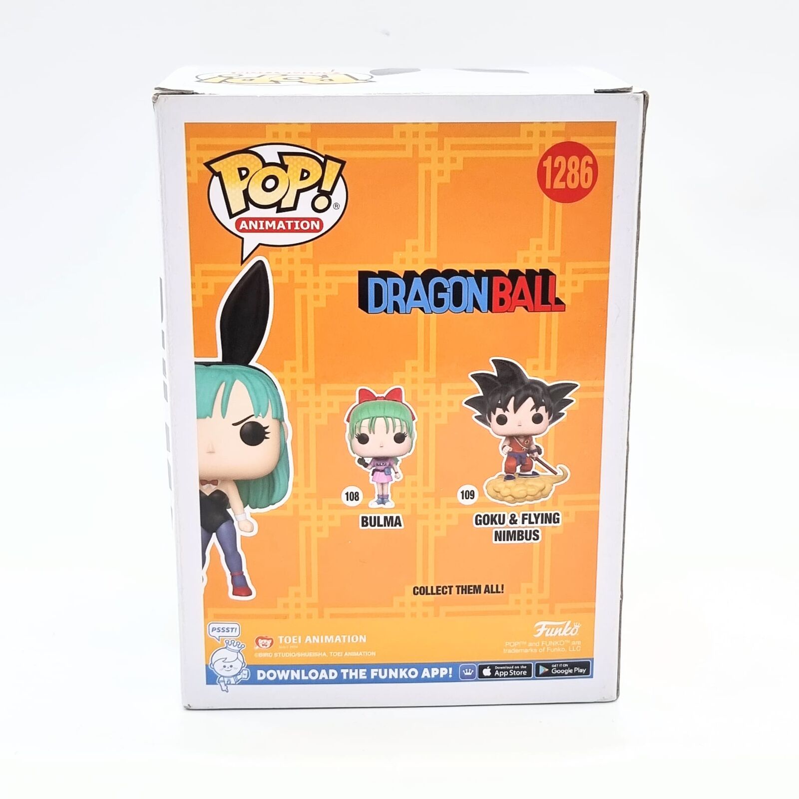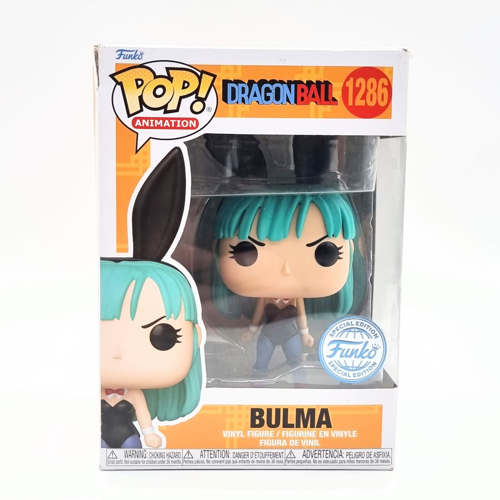 This Funko Pop! Animation Bulma Bunny Costume #1286 Special Edition Vinyl Figure is a collectible piece inspired by the popular anime series Dragon Ball. Produced by Funko as part of the Pop! Animation lineup, the figure features Bulma dressed in a stylized bunny costume, capturing the character’s playful appearance from the series.