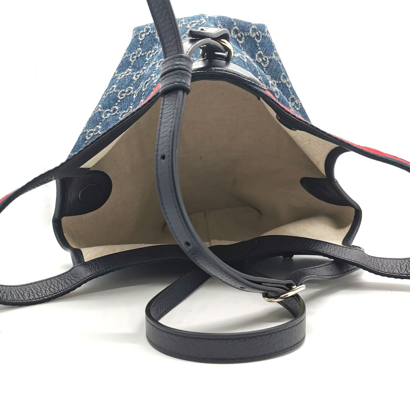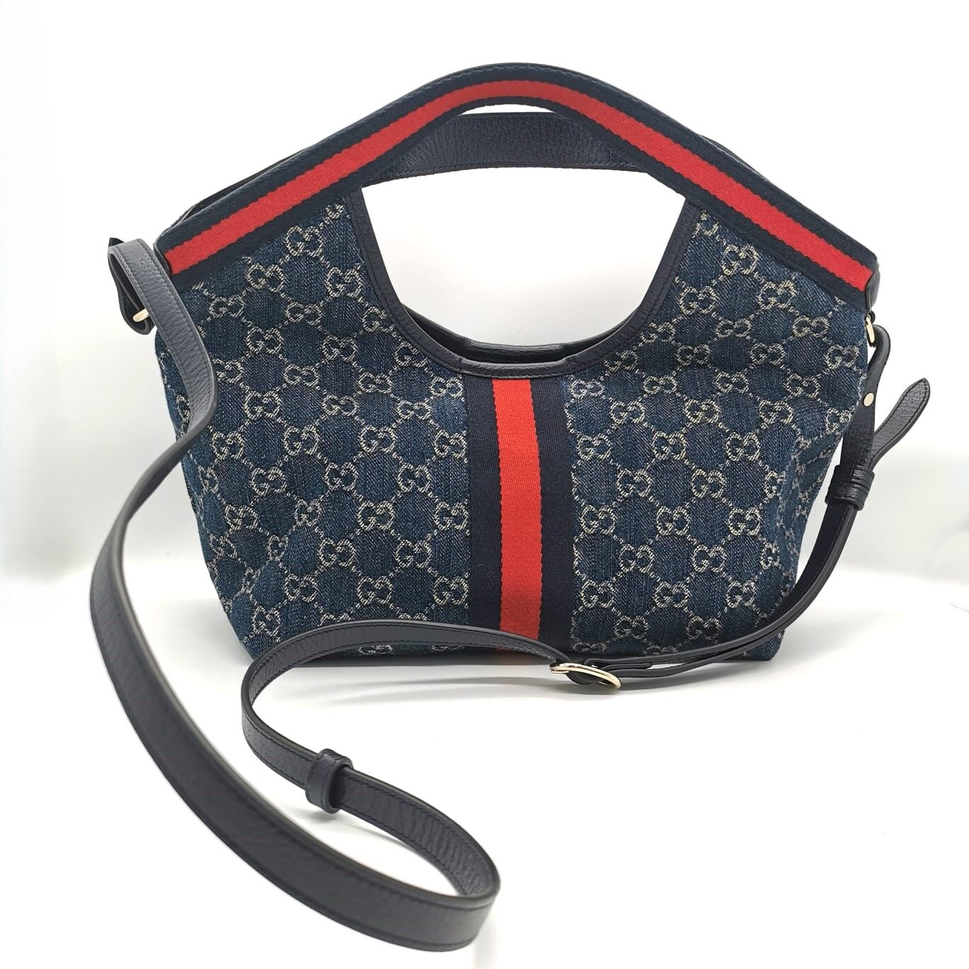 - Blue & white GG denim exterior