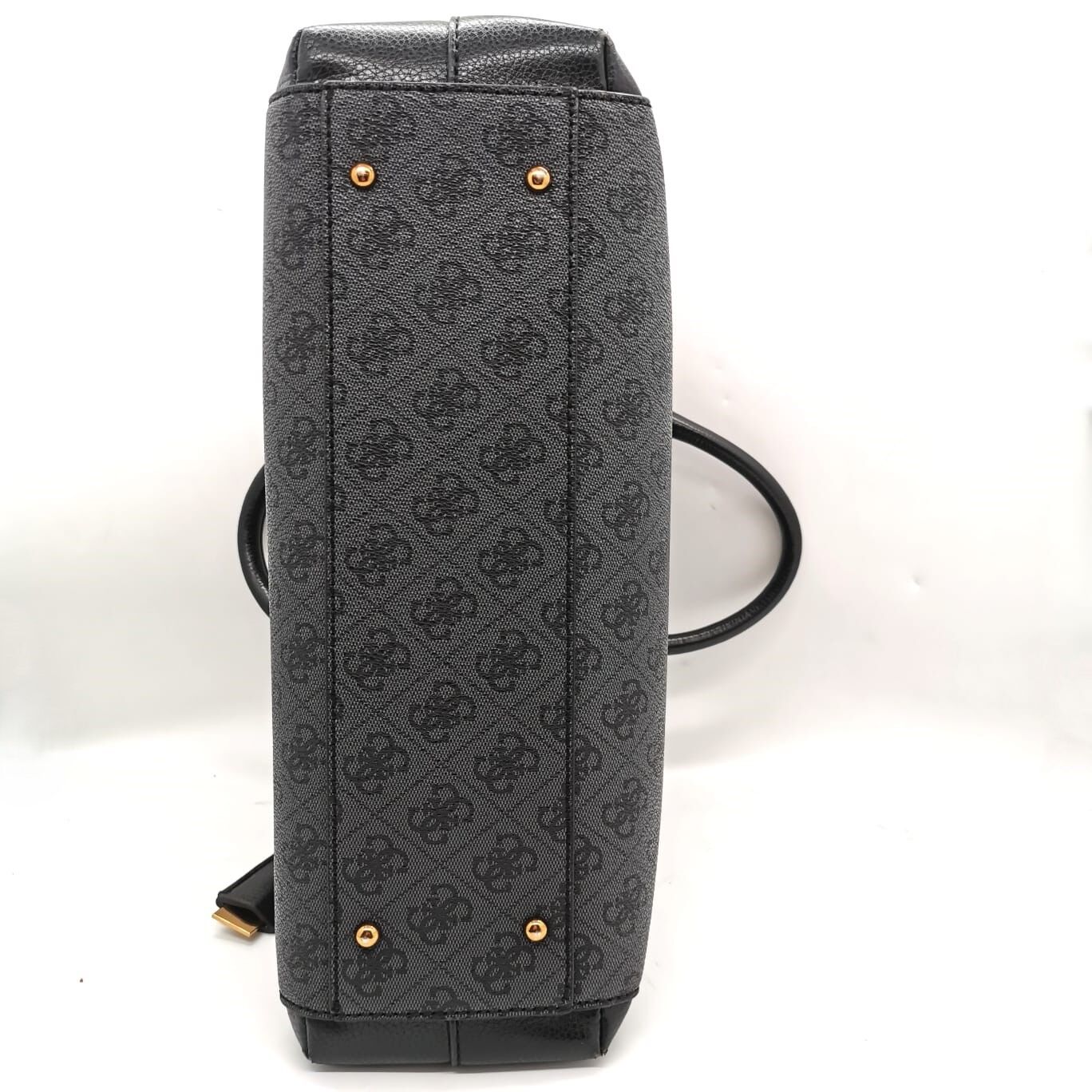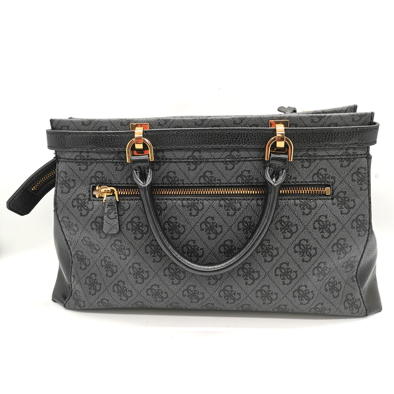 Crafted from premium 4G logo basique PU with pebble PU trim, the bag features shiny bronze hardware for a refined finish. The structured satchel design offers multiple internal compartments to keep your belongings organised, while secure zip closures provide peace of mind. Carry it by the dual top handles for a classic look or attach the adjustable, removable crossbody strap for hands-free convenience. Ideal for work, shopping, or travel, this Guess satchel is a versatile staple that never goes out of style.