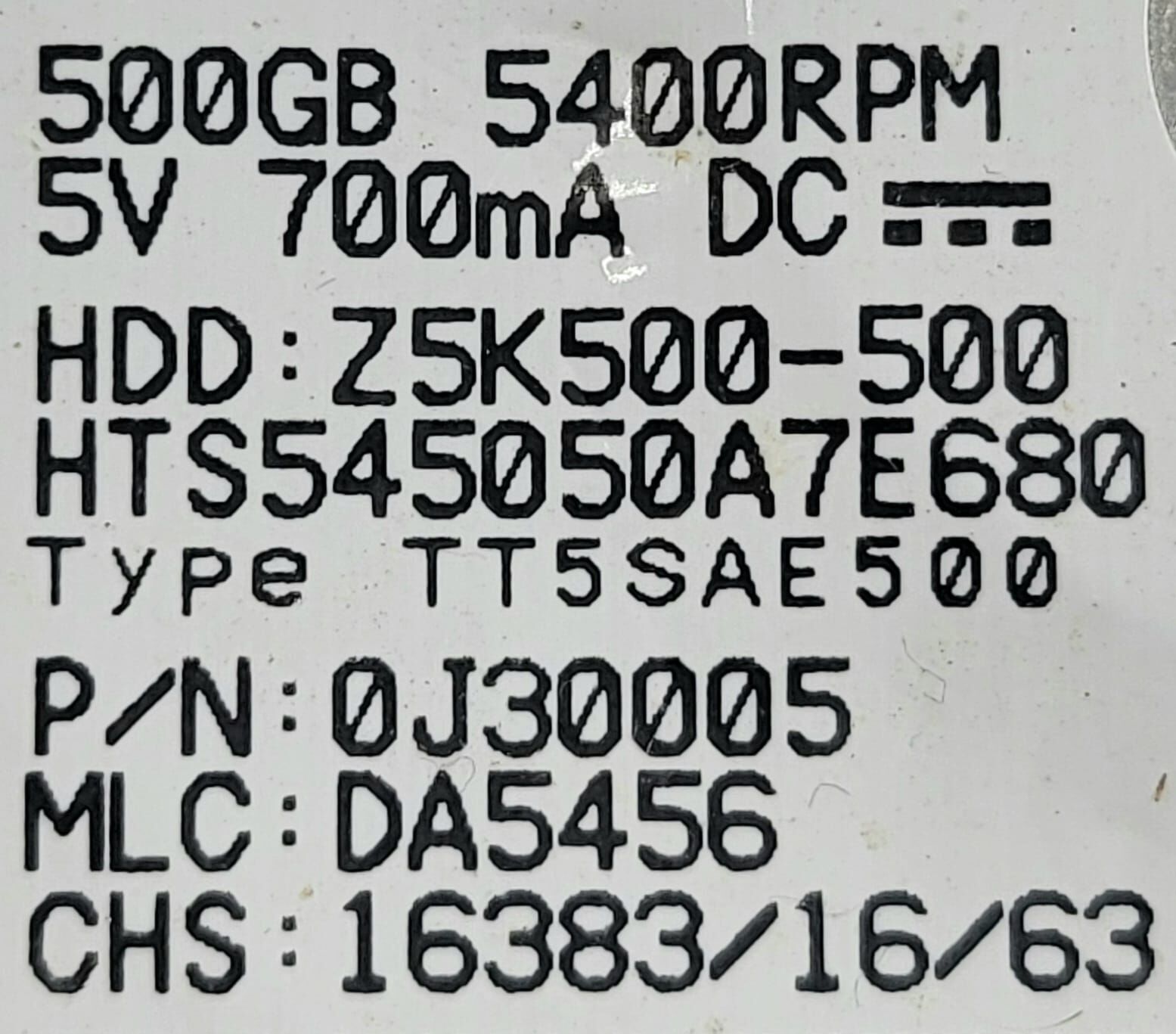 HGST 500GB 2.5 Inch SATA HDD 5400RPM H2T500854S7 Laptop Drive