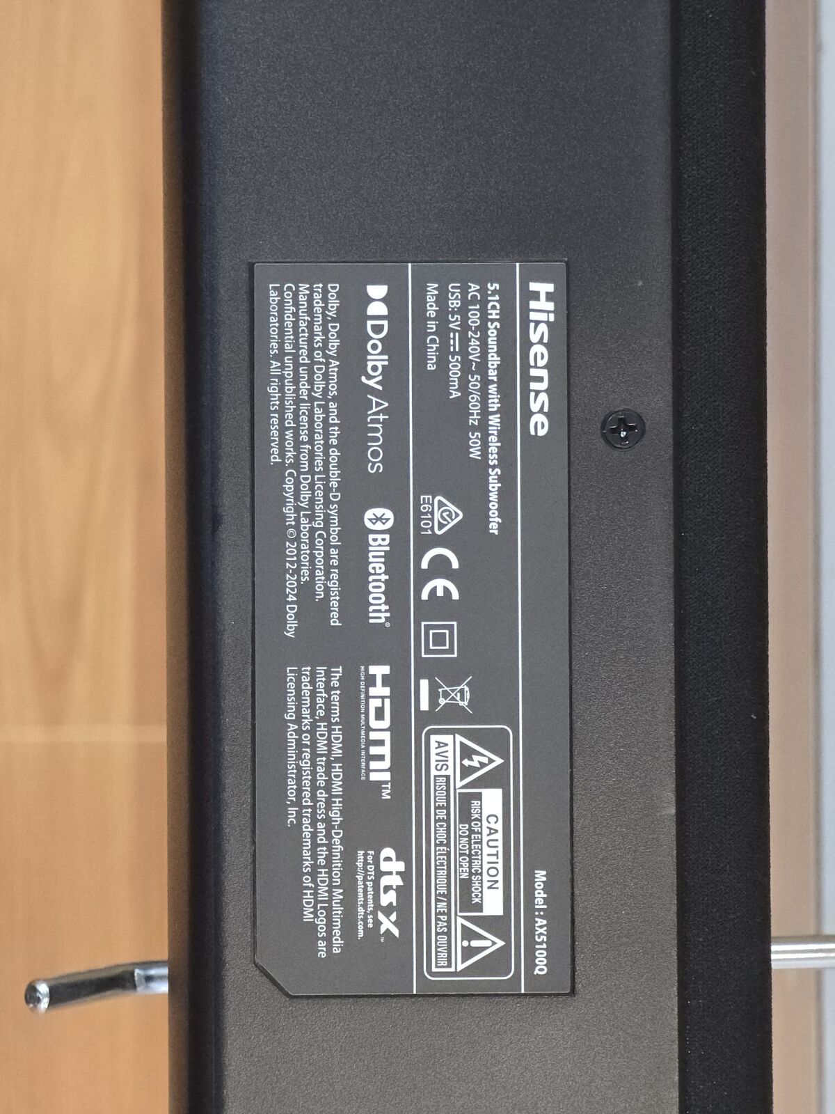 Hisense AX5100Q 5.1ch Soundbar Wireless Subwoofer and Rear Surround Speakers