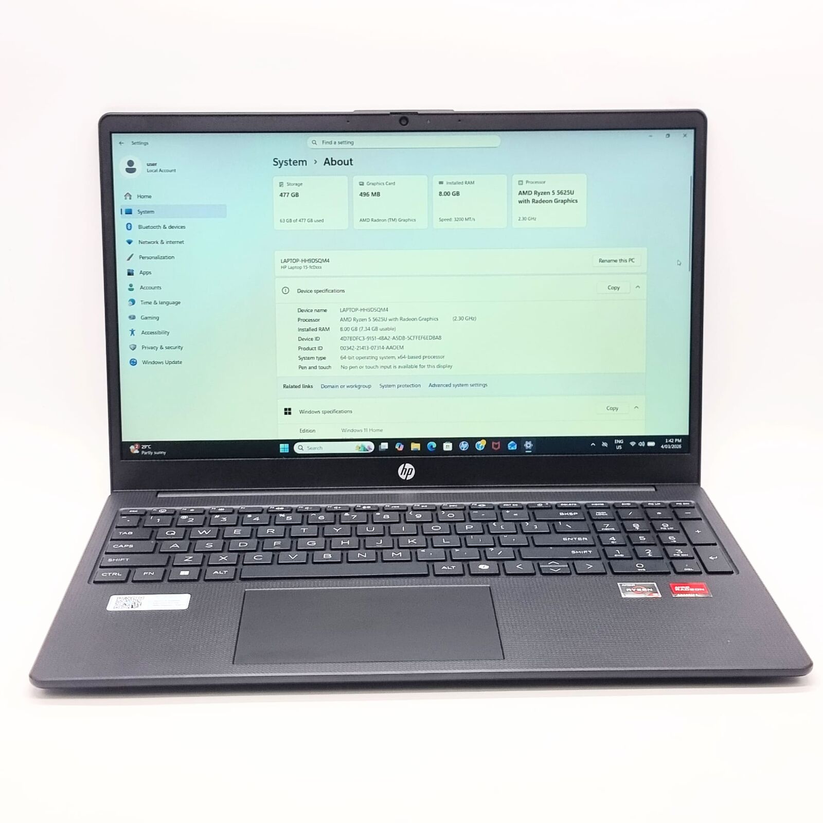 The HP 15-FC433AU laptop delivers reliable everyday performance powered by the AMD Ryzen 5 5625U processor with Radeon Graphics, running at a base speed of 2.30GHz. Designed for productivity, browsing, streaming, and office tasks, this laptop offers a balanced combination of performance and storage.