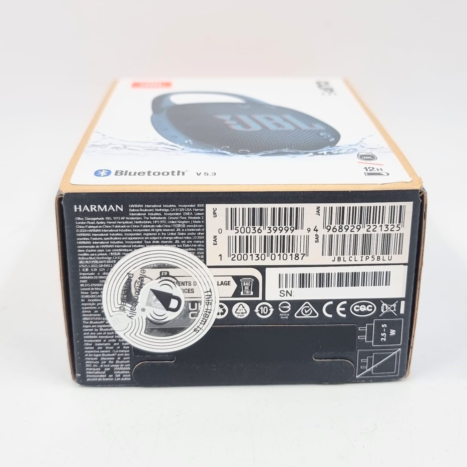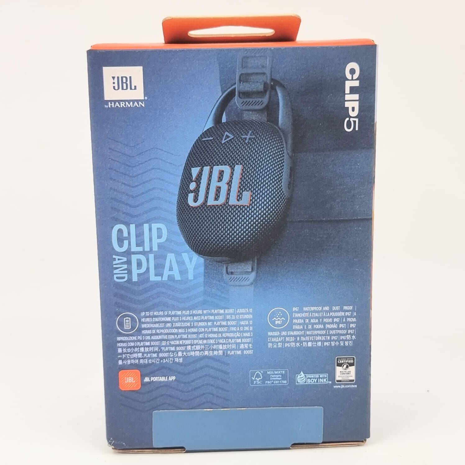 Introducing the JBL Clip 5- your ultimate musically crispy, pocket-sized sidekick. This ultra-portable Bluetooth speaker brings JBL Pro-Sound with punchy bass in a slim, IP67-rated body. It’s rugged, dust-proof, and waterproof - ready for beach vibes, shower jams, or hiking beats. Built-in carabiner means you clip it to anything and go. Play all day with 12-hour battery life, plus 3 hours extra via Playtime Boost. Pair two for instant stereo or link multiple via Auracast for a party that refuses to quit. Made with recycled materials, it's eco-conscious and highly stylish.