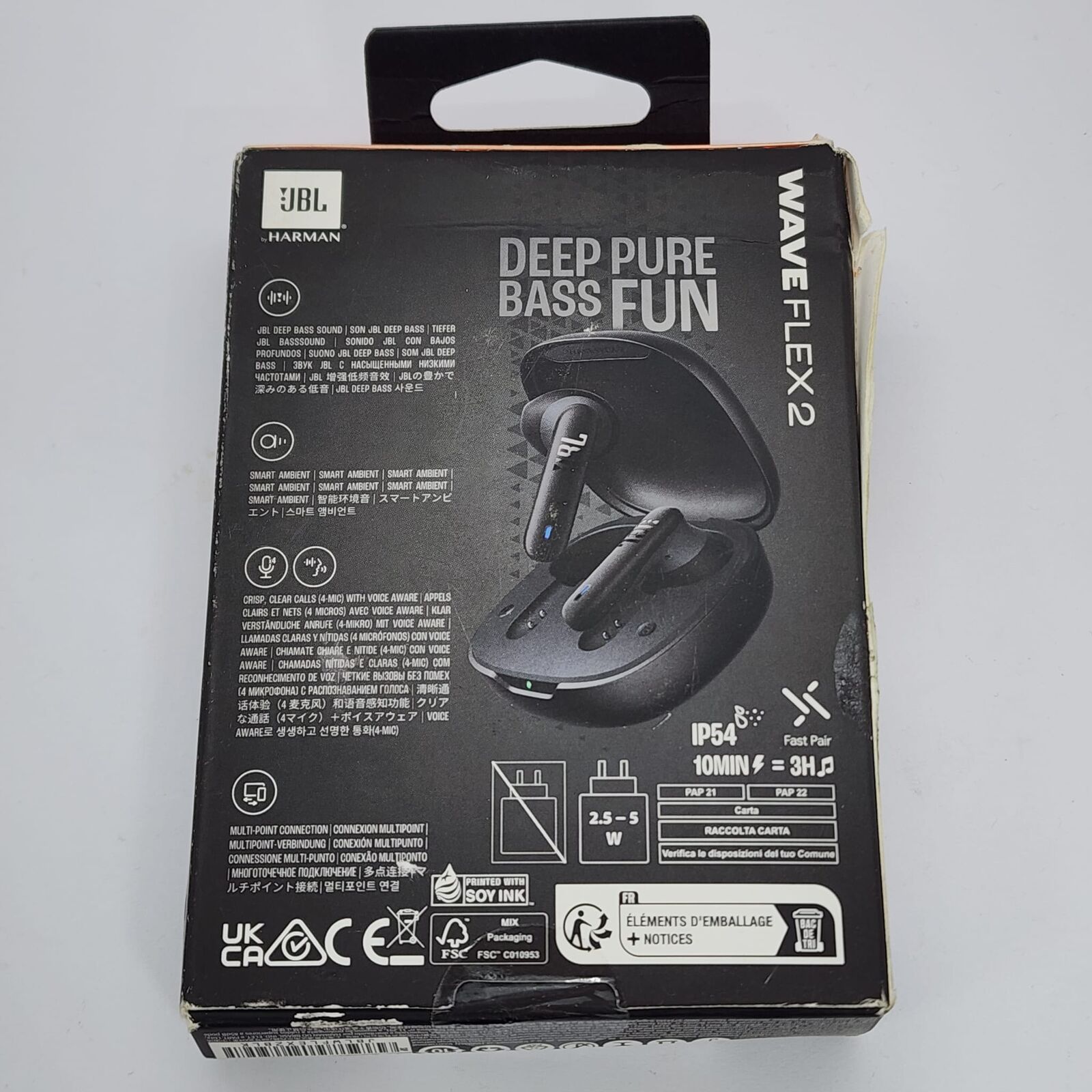 Experience signature JBL sound with the JBL Wave Flex 2 True Wireless Earbuds in Black (model JBLWFLEX2BLK). Featuring Bluetooth 5.3 for seamless connectivity, these TWS earbuds deliver deep bass, Smart Ambient for environmental awareness, and a secure stick-closed design for all-day comfort during commutes, workouts, or daily use.