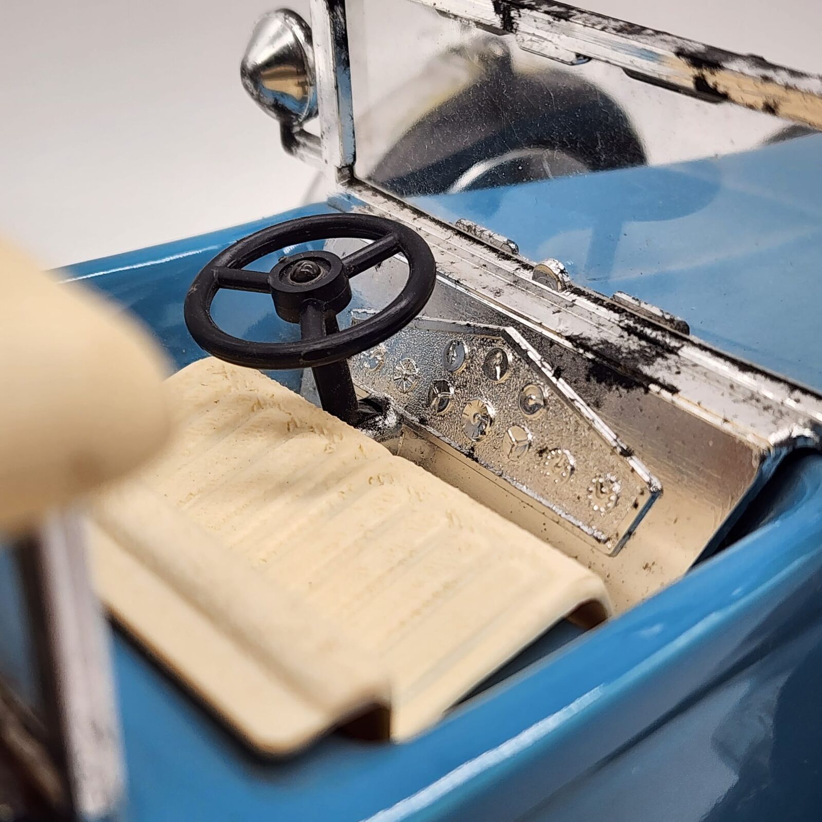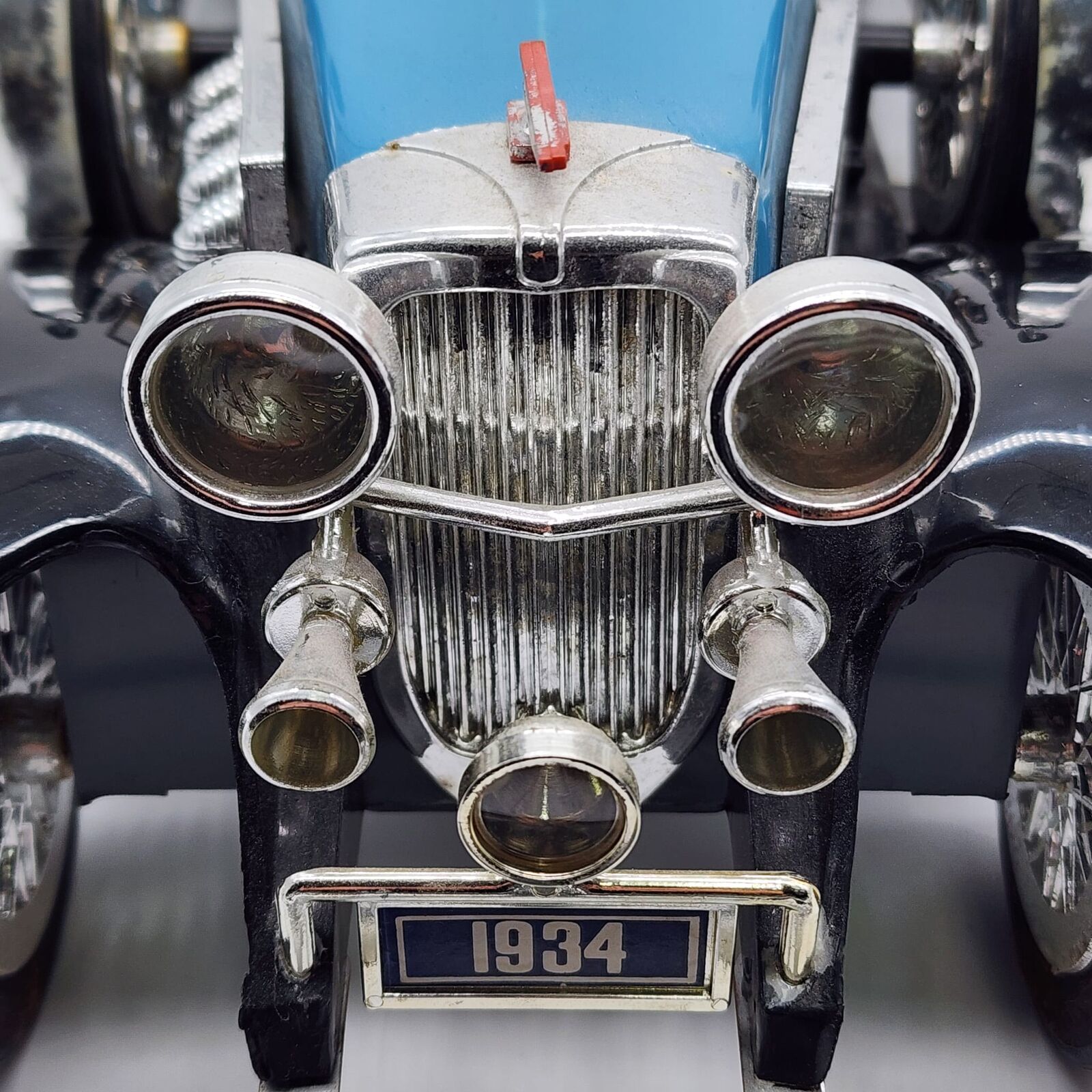 - Light blue finish with black and chrome detailing