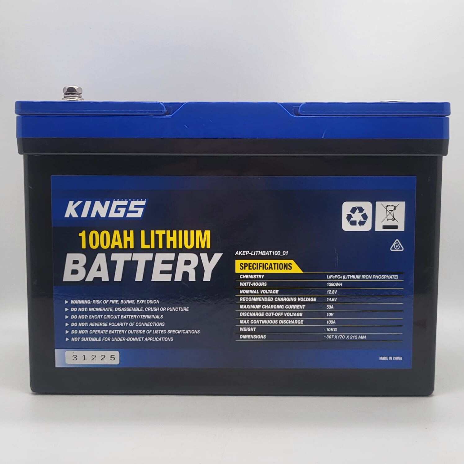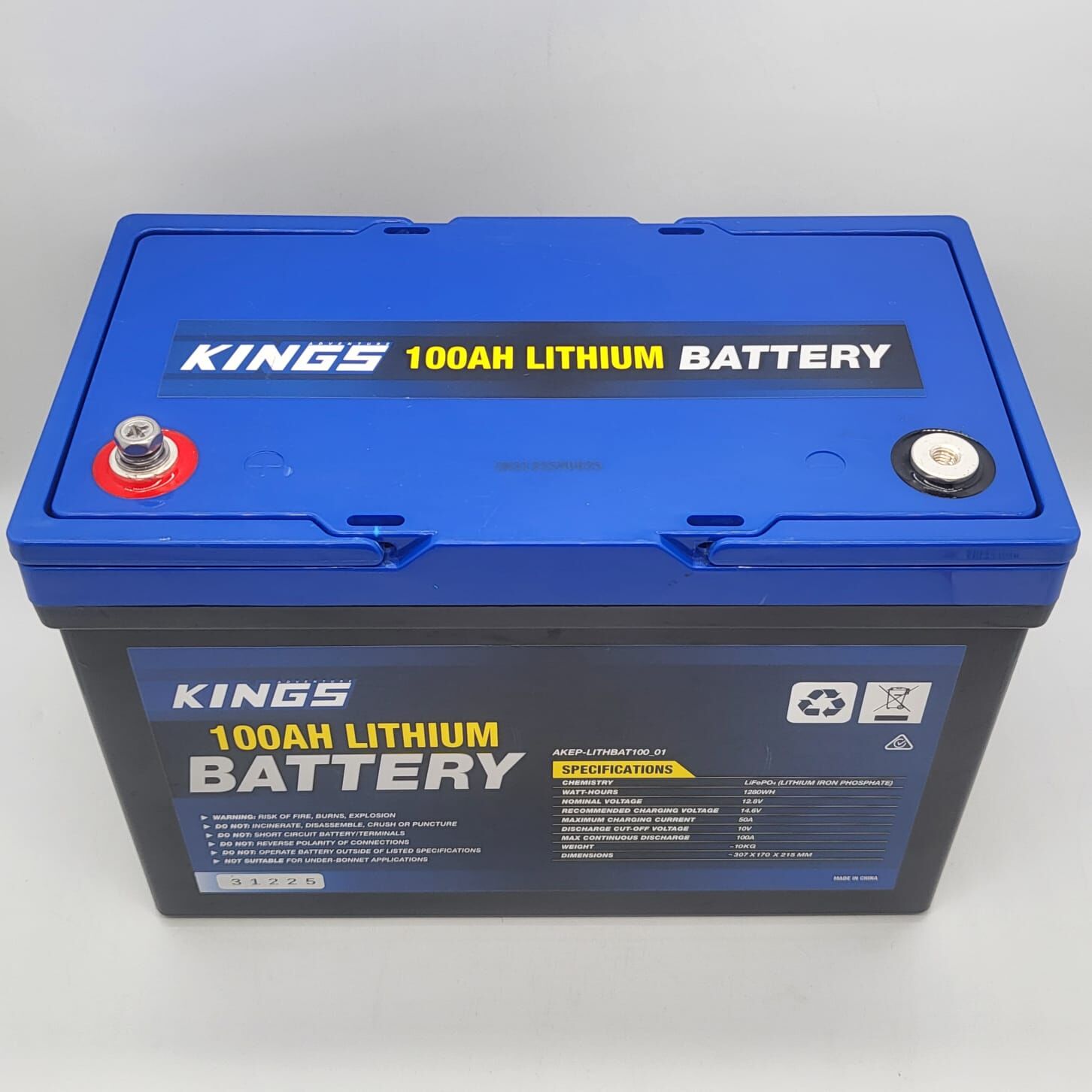 Kings 100Ah LiFePO4 Battery 12V 1280Wh 10kg Deep Cycle AKEP-LITHBAT100_01