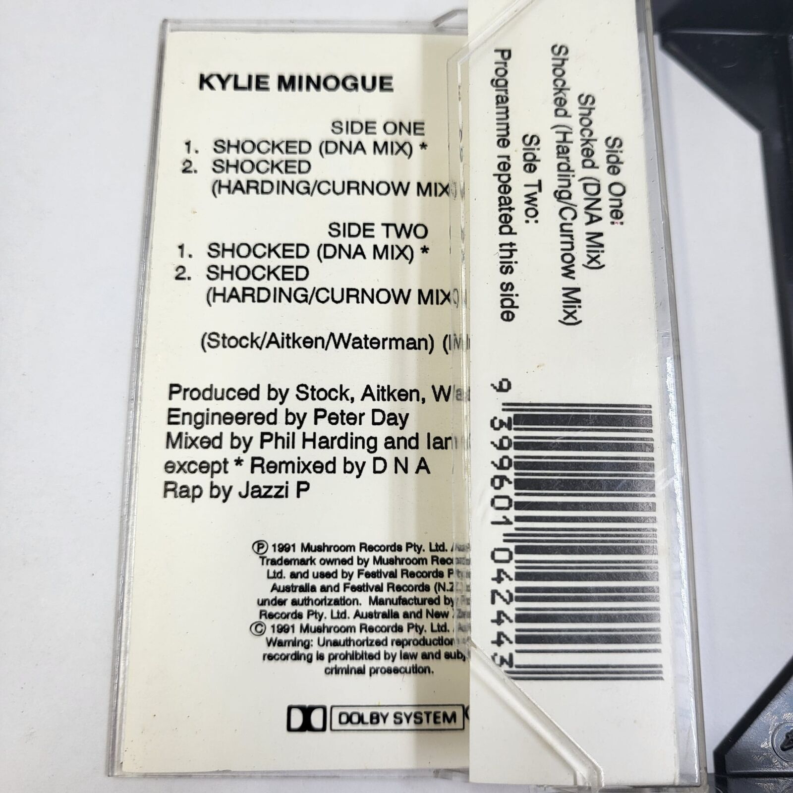 Own a piece of 90s pop history with this Kylie Minogue “Shocked” DNA Mix cassette tape (catalogue C10424). This collectible tape features the exclusive DNA remix of Kylie’s hit single, delivering iconic dance-pop energy straight from the era that defined the charts. Perfect for collectors, music enthusiasts, and fans of classic pop culture memorabilia.