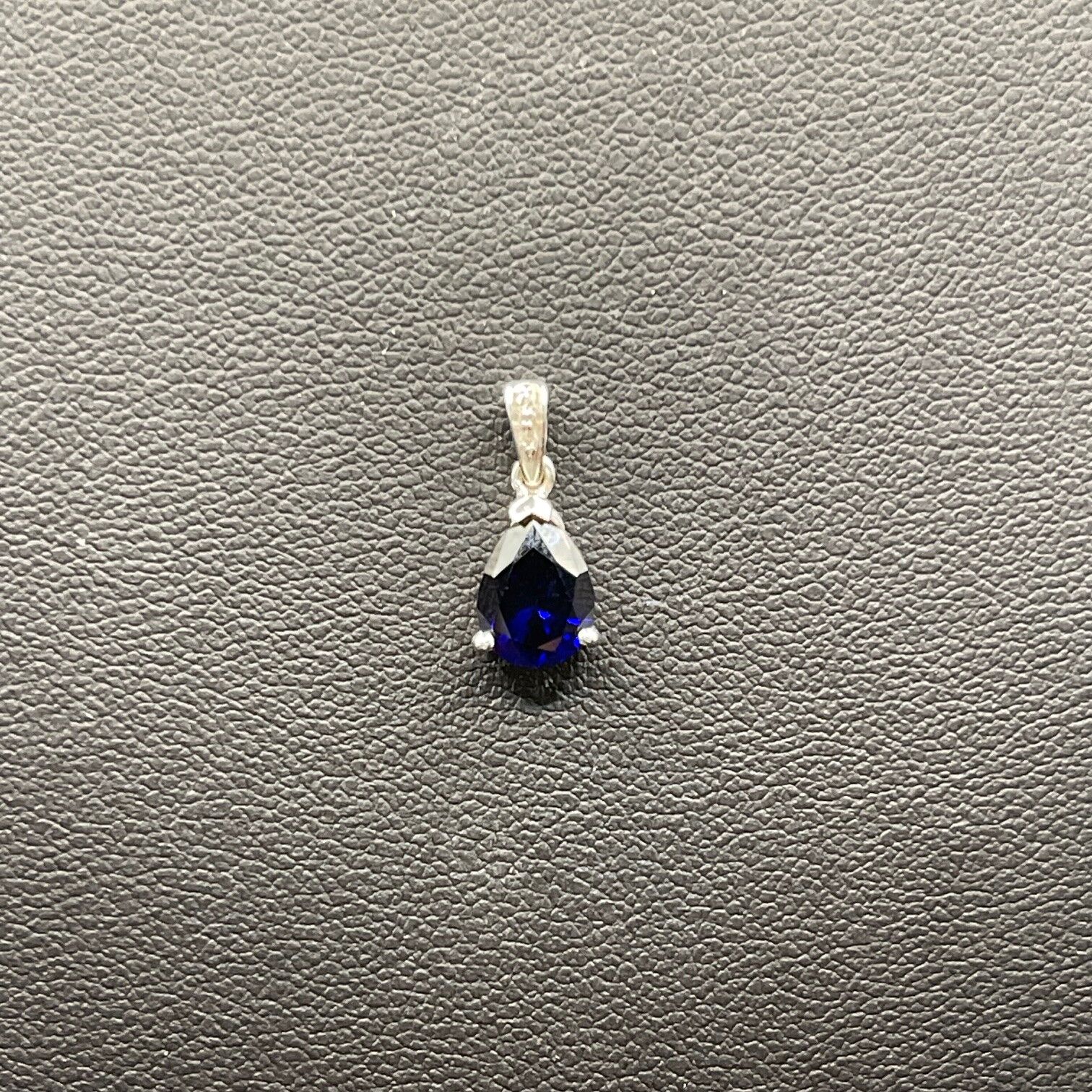 Ladies 10ct White Gold Blue Sapphire & Diamond Droplet Pendant