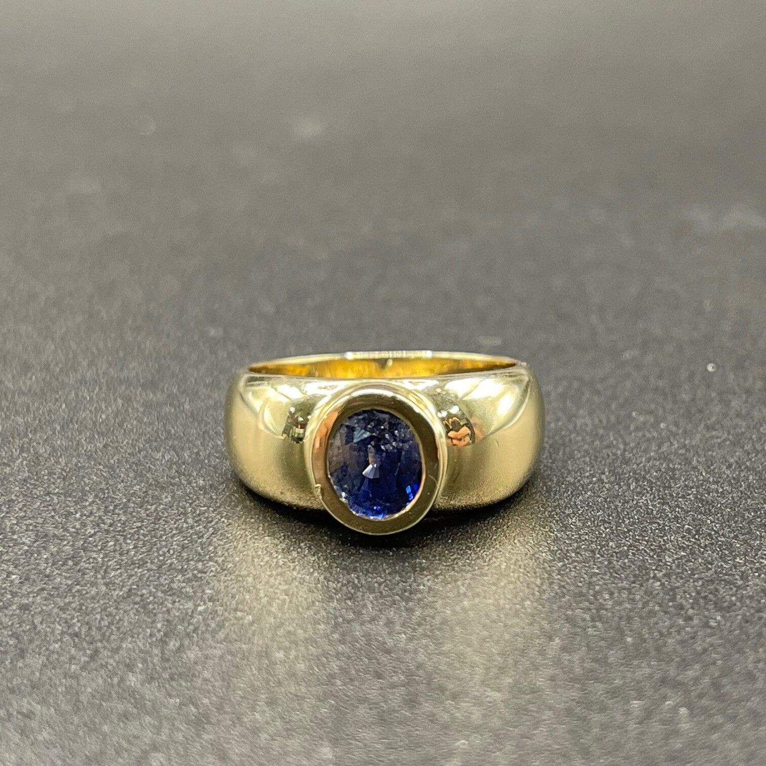 Simple and chic, this ring features a beautiful blue gemstone stone. Ring is crafted with 14ct yellow gold. Perfect for any occasion.