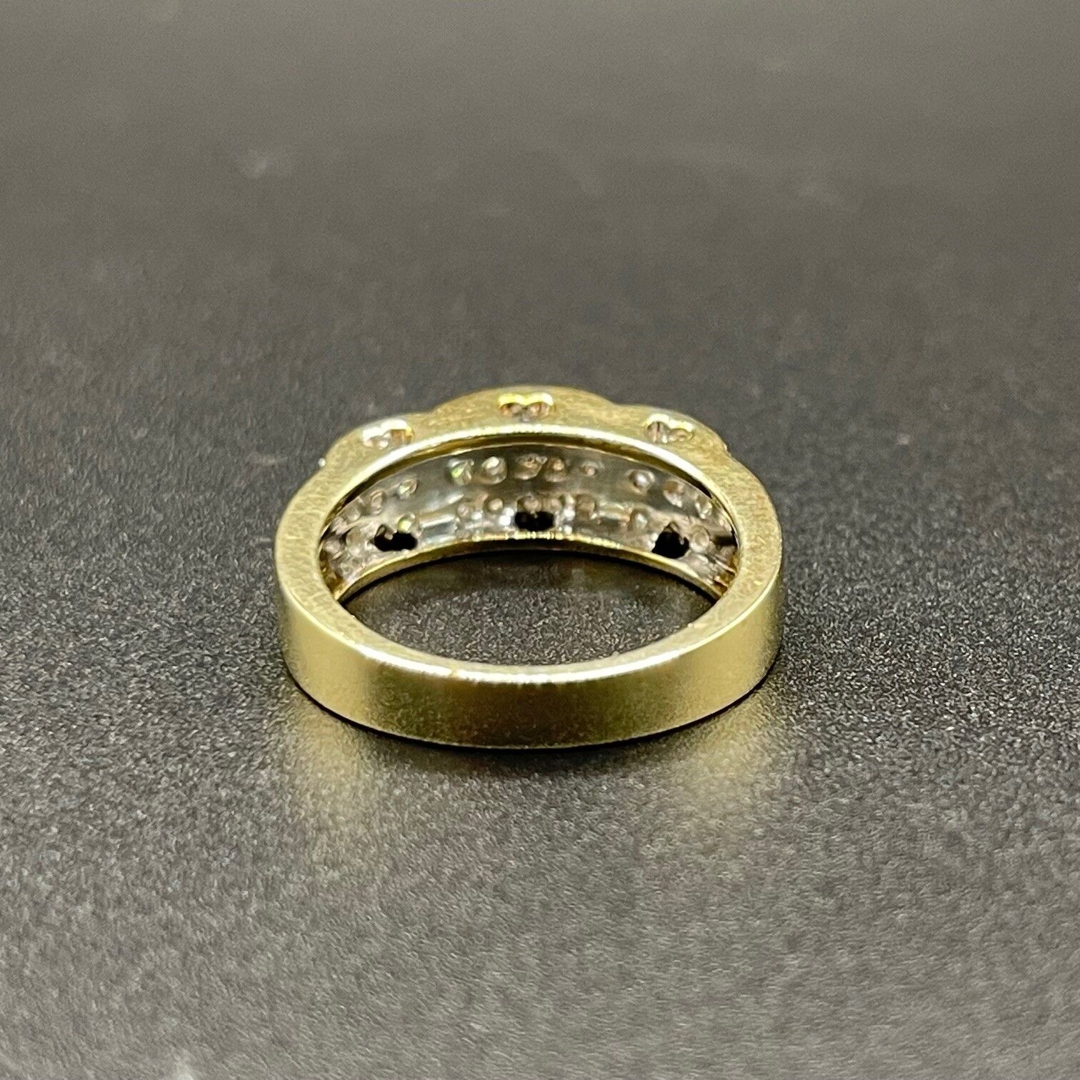 - Diamonds are set in white gold