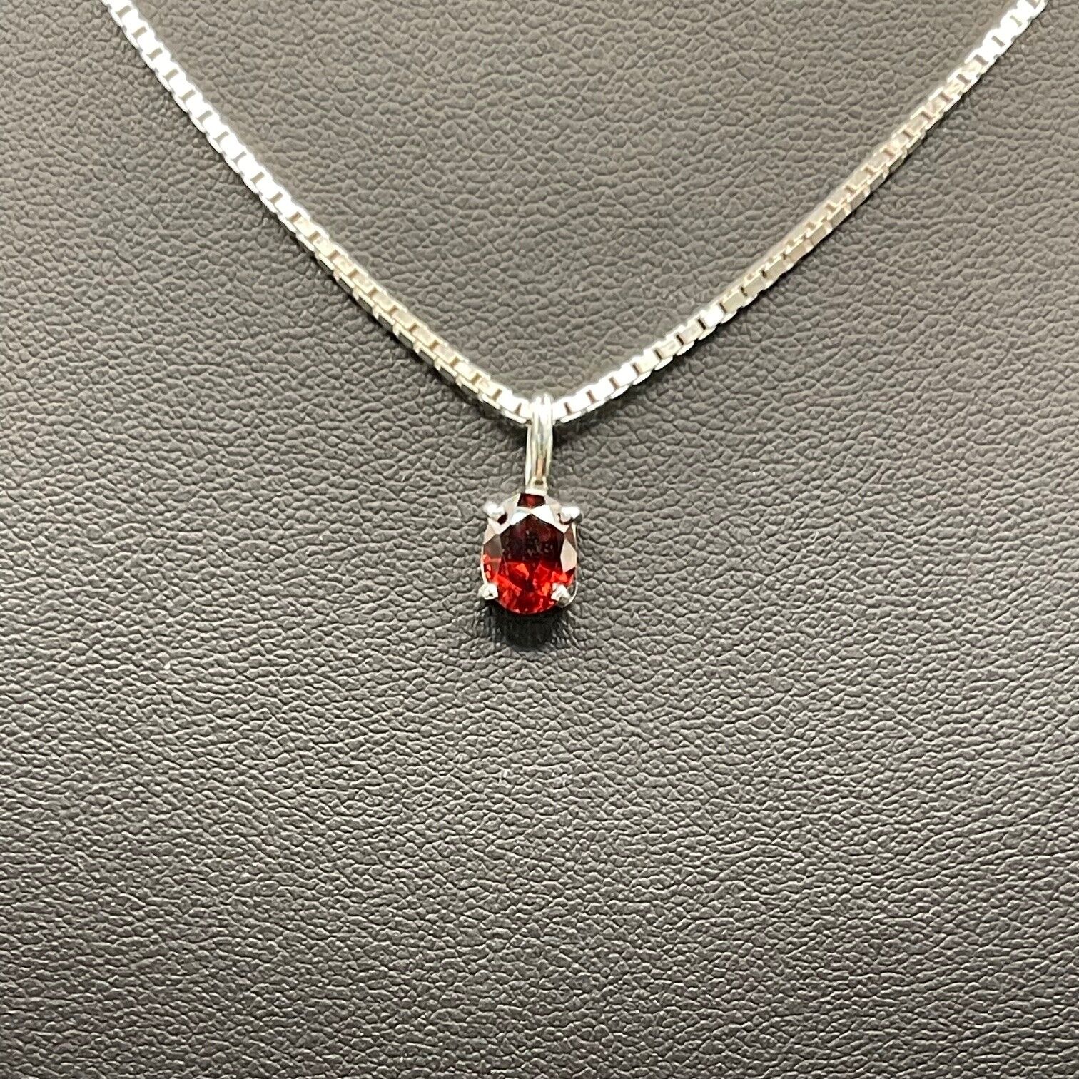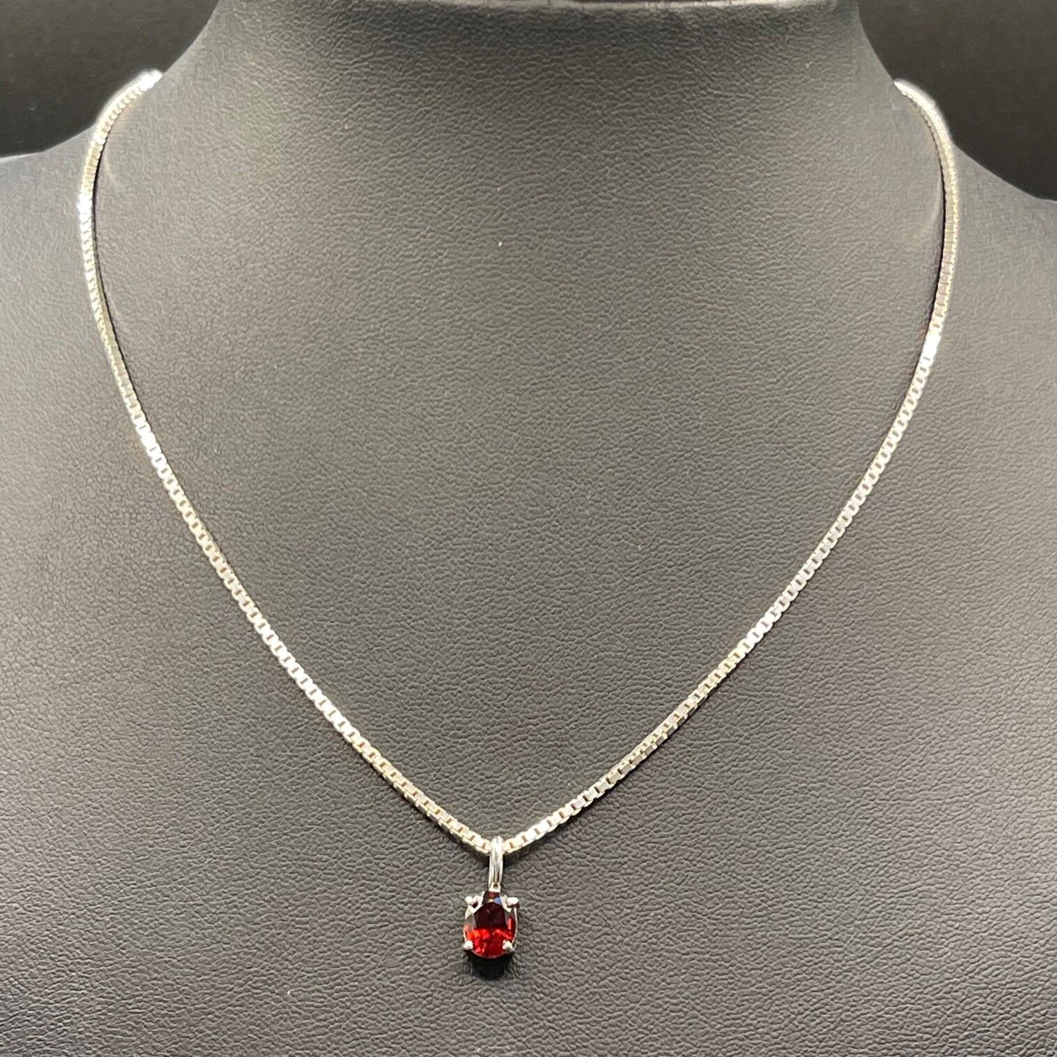 Ladies 925 Sterling Silver Box Link & Red Gemstone Necklace