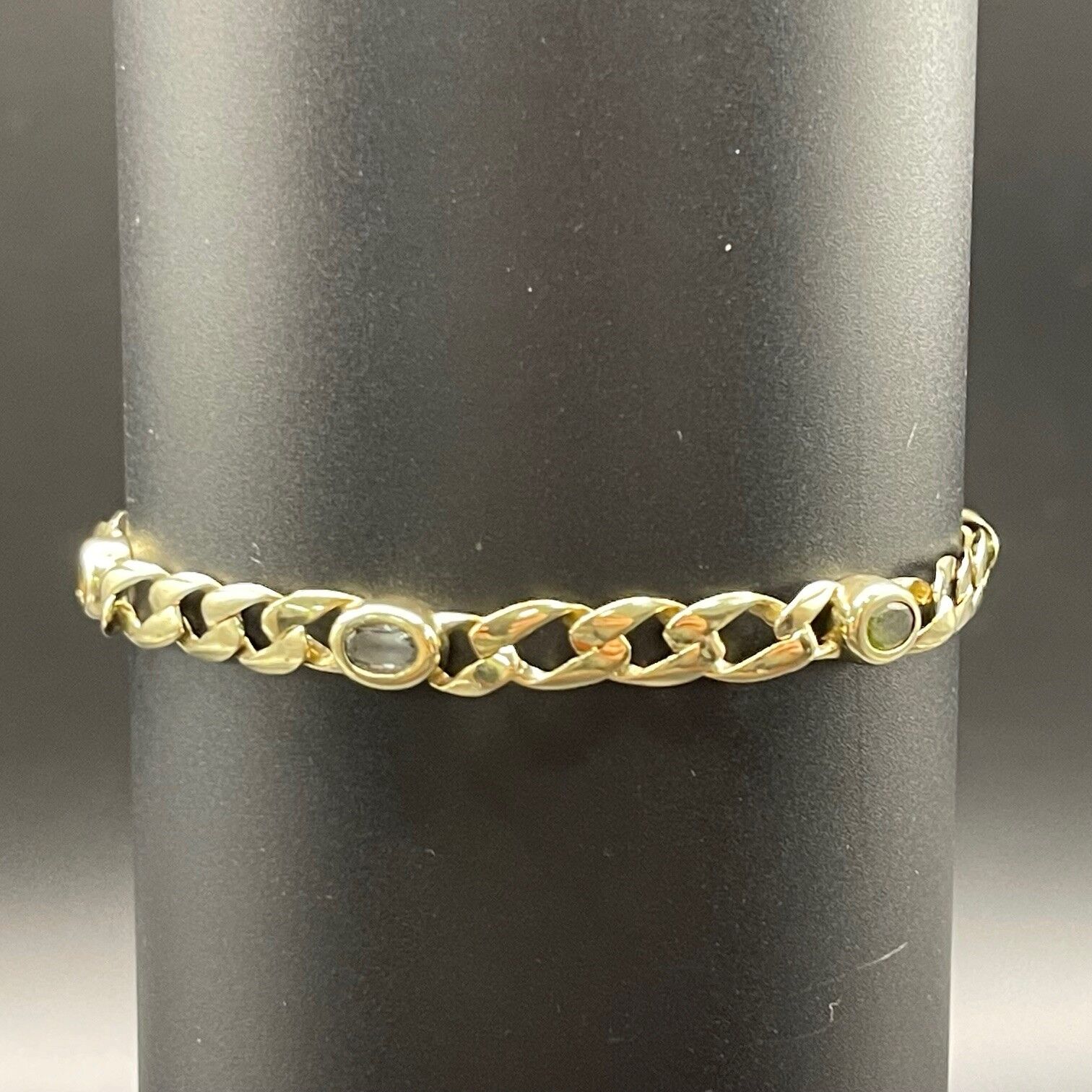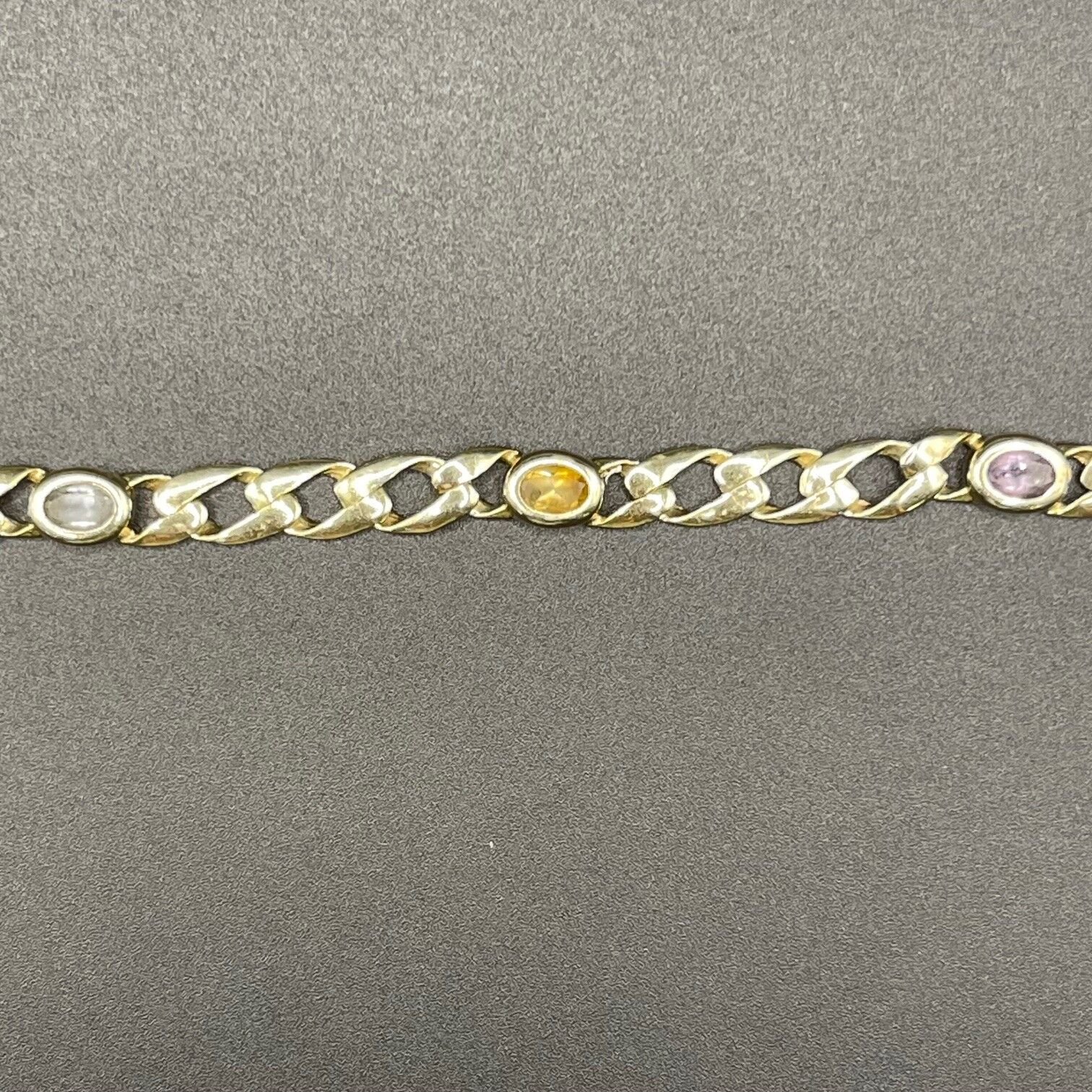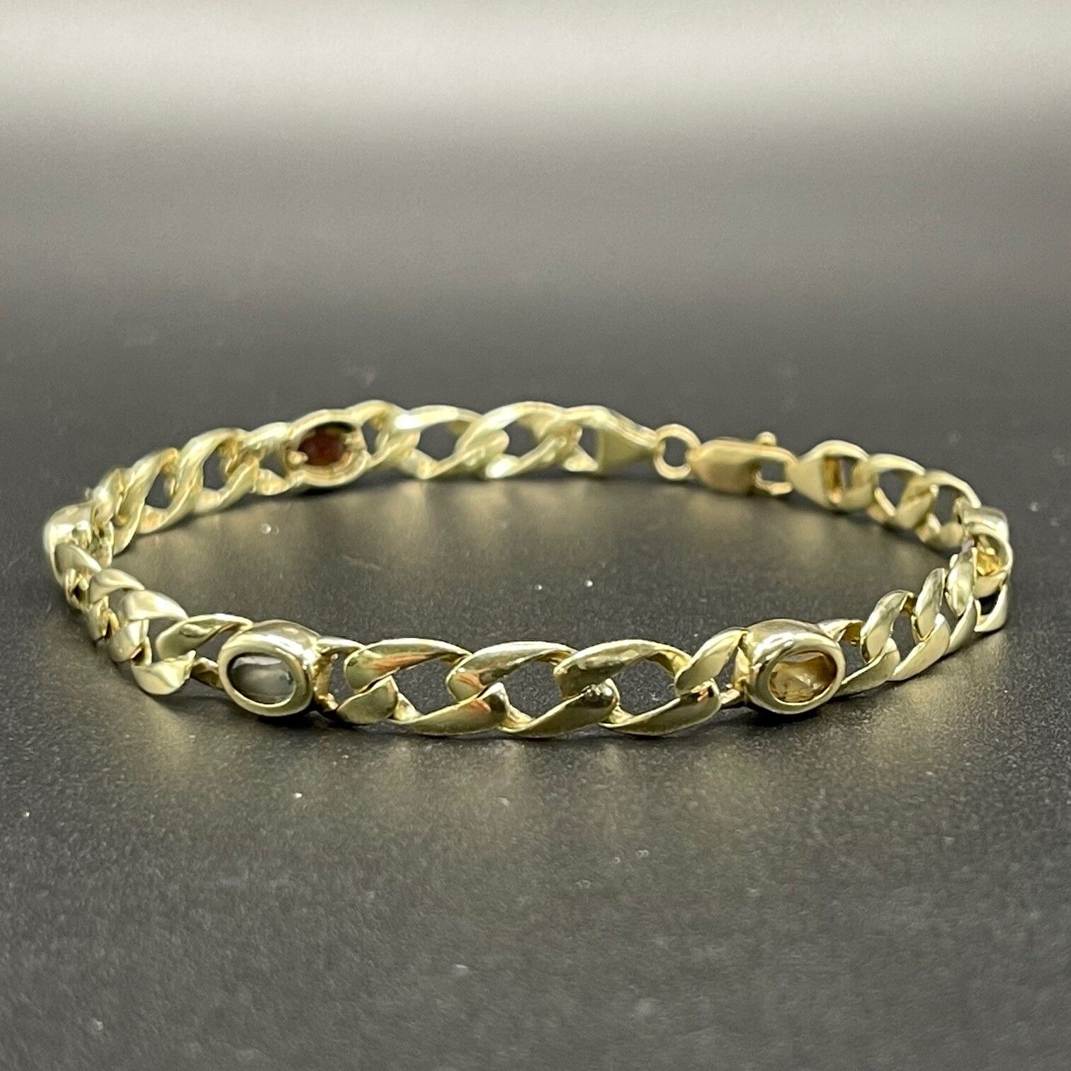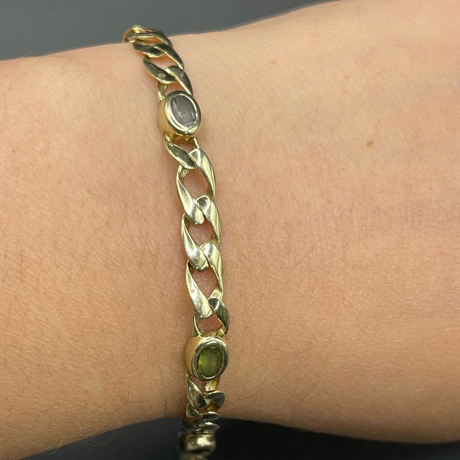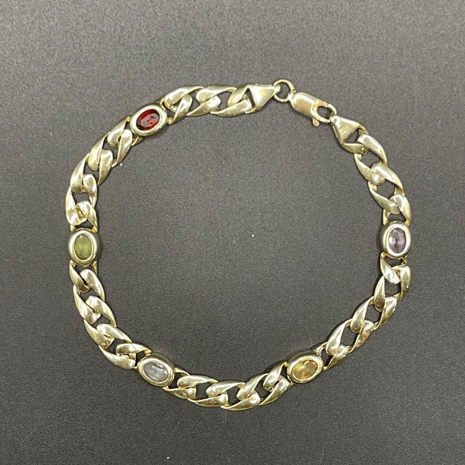 Ladies 9ct Yellow Gold Curb Link Multi Stone Bracelet