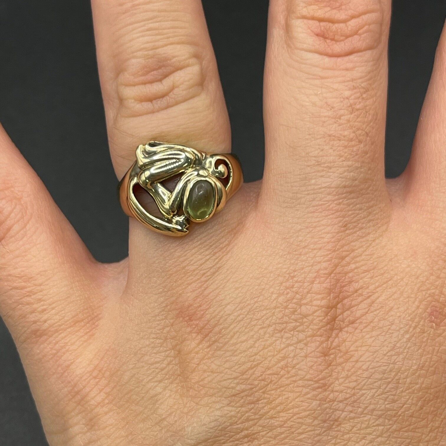 Simple and chic, this ring features a beautiful green gemstone stone. Ring is crafted with 9ct yellow gold. Perfect for any occasion.