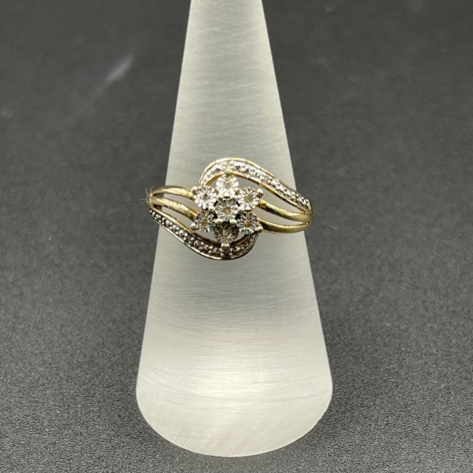 Ladies 9ct Yellow Gold Natural Diamond Cluster Ring