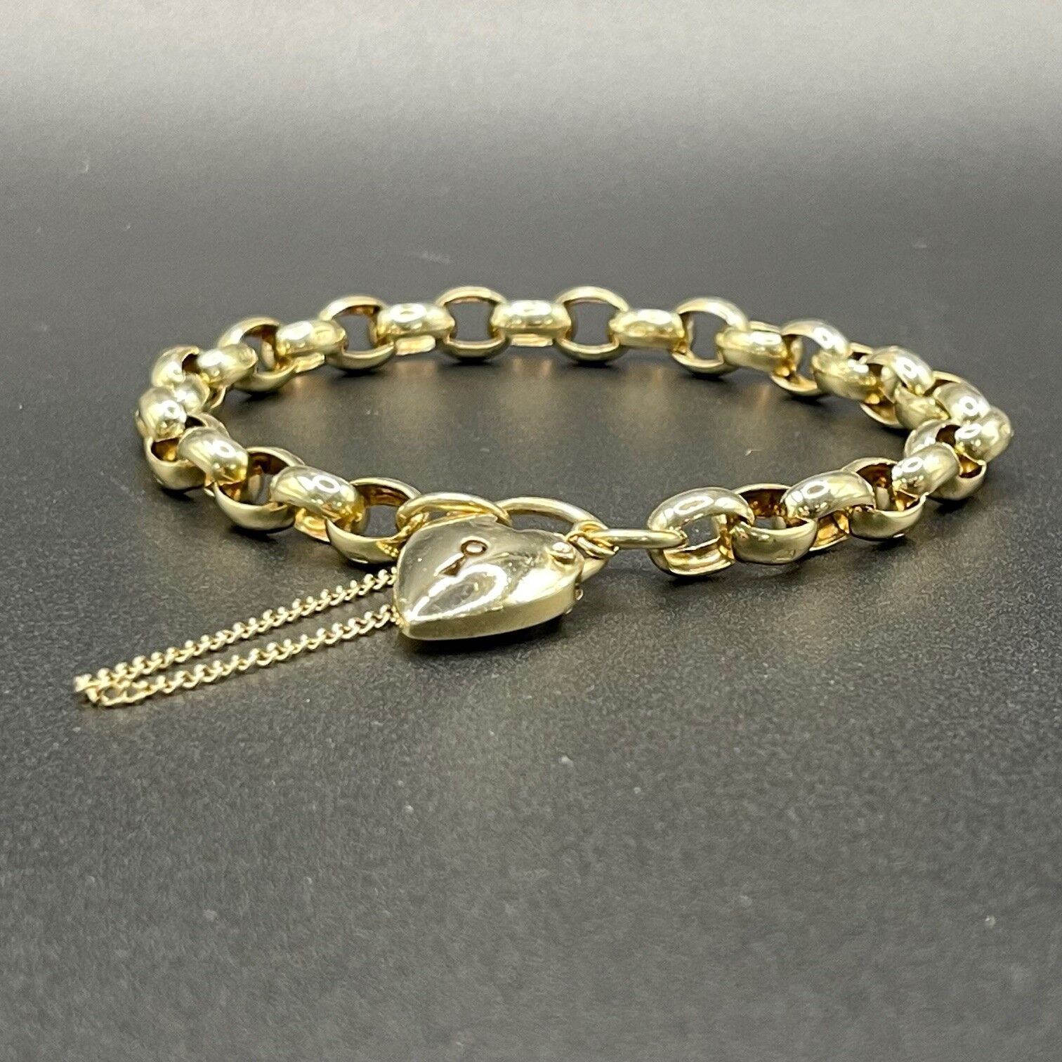 Embrace modern elegance of this oval belcher link bracelet. Crafted in 9 carat yellow gold. Featuring a Love heart locket clasp.