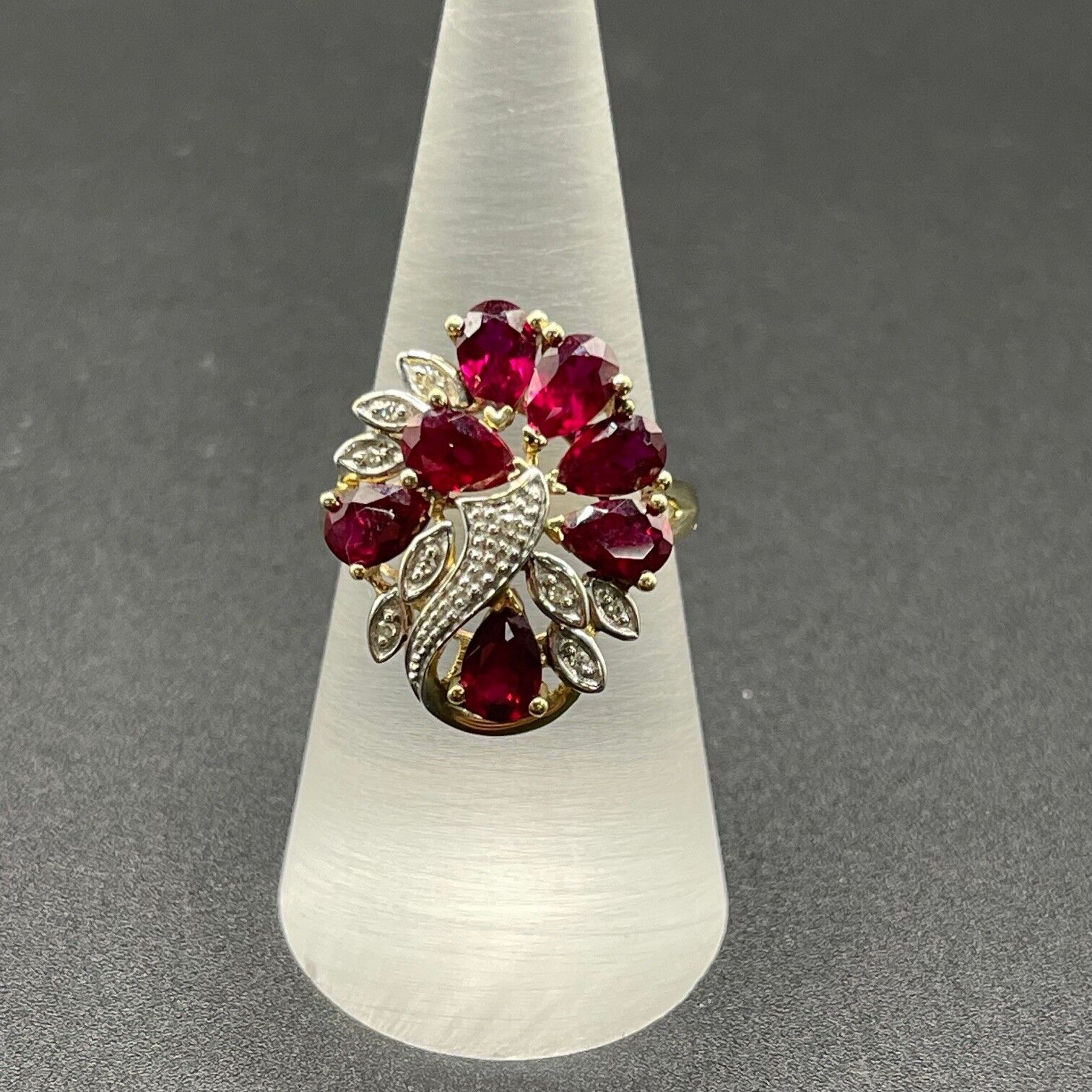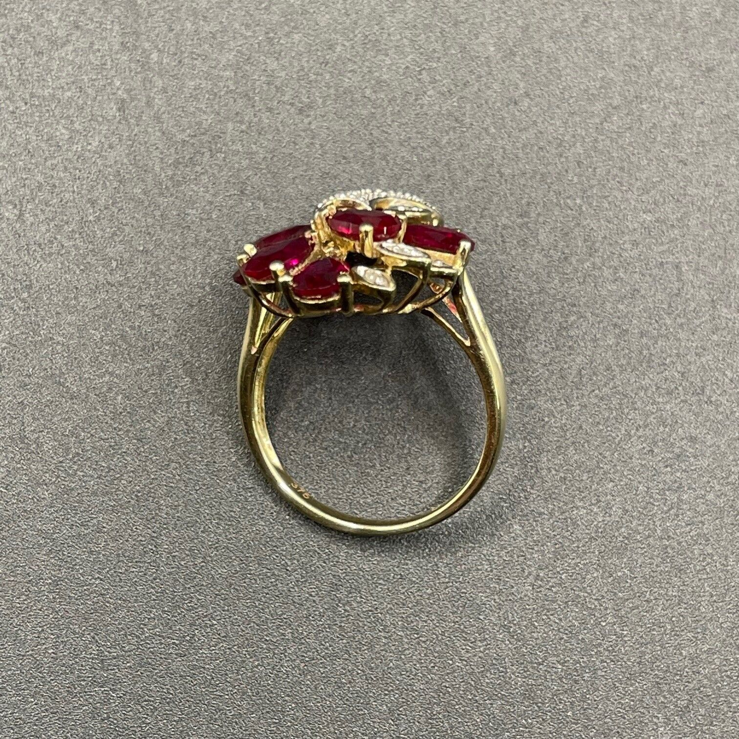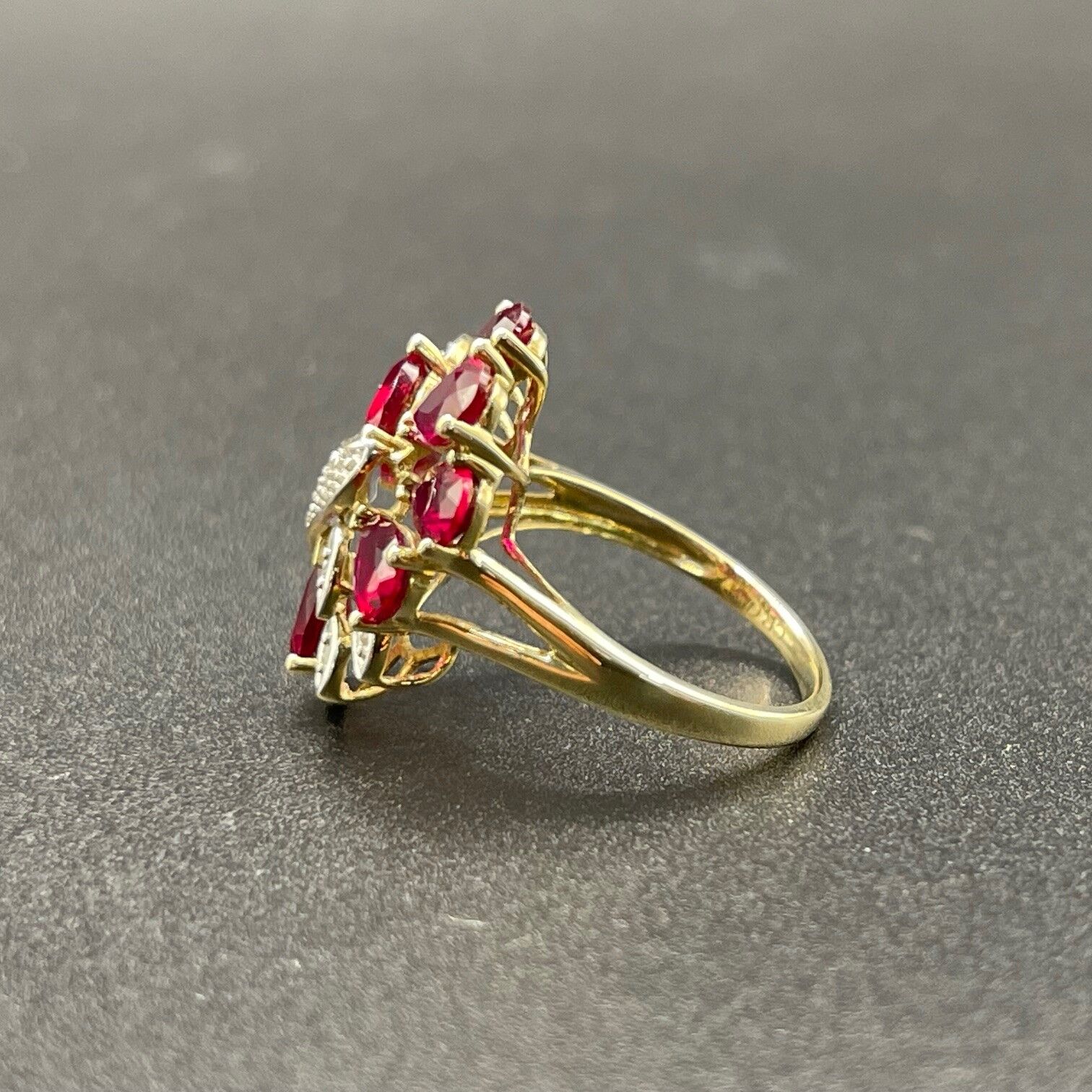 Ladies 9ct Yellow Gold Red Gemstone & Diamond Ring
