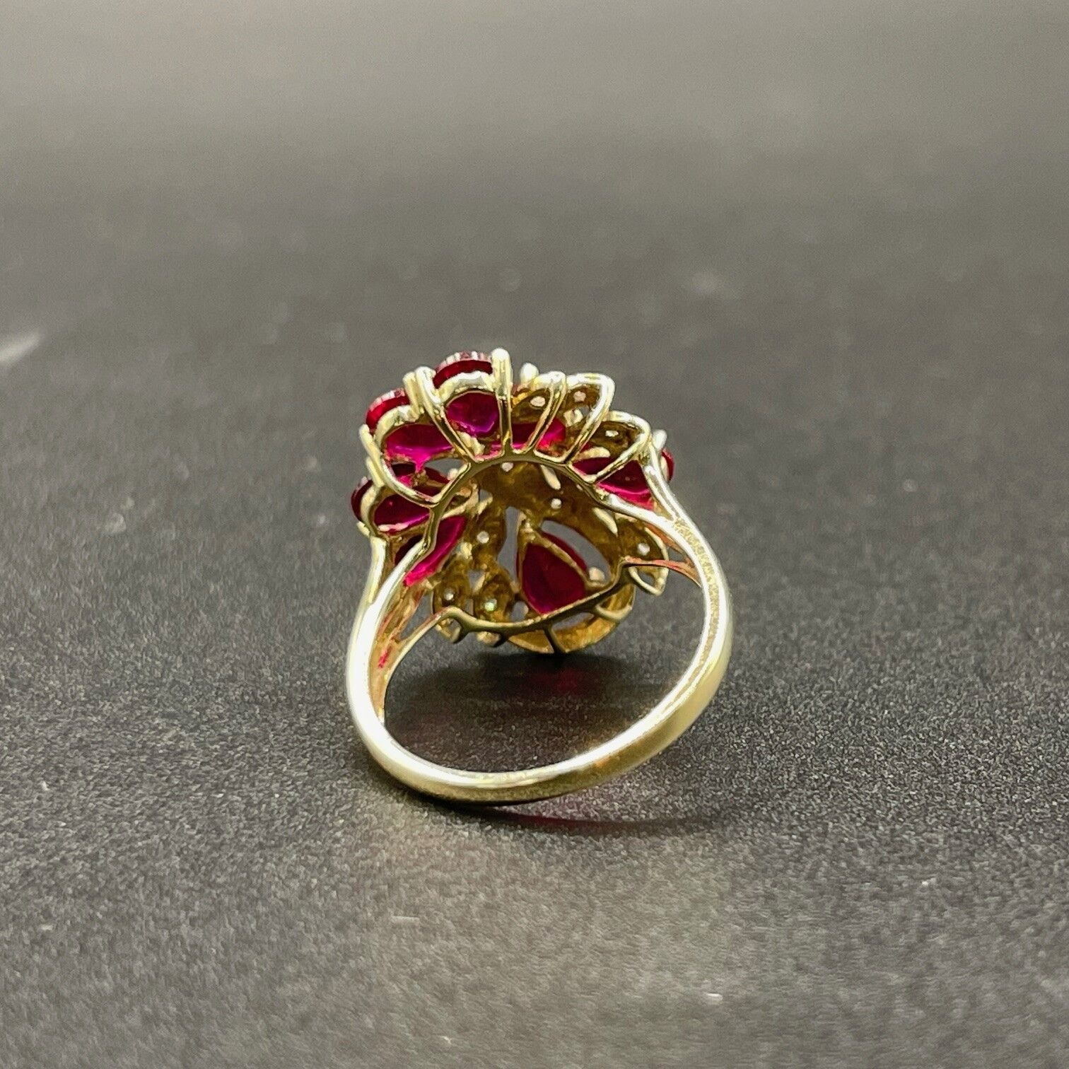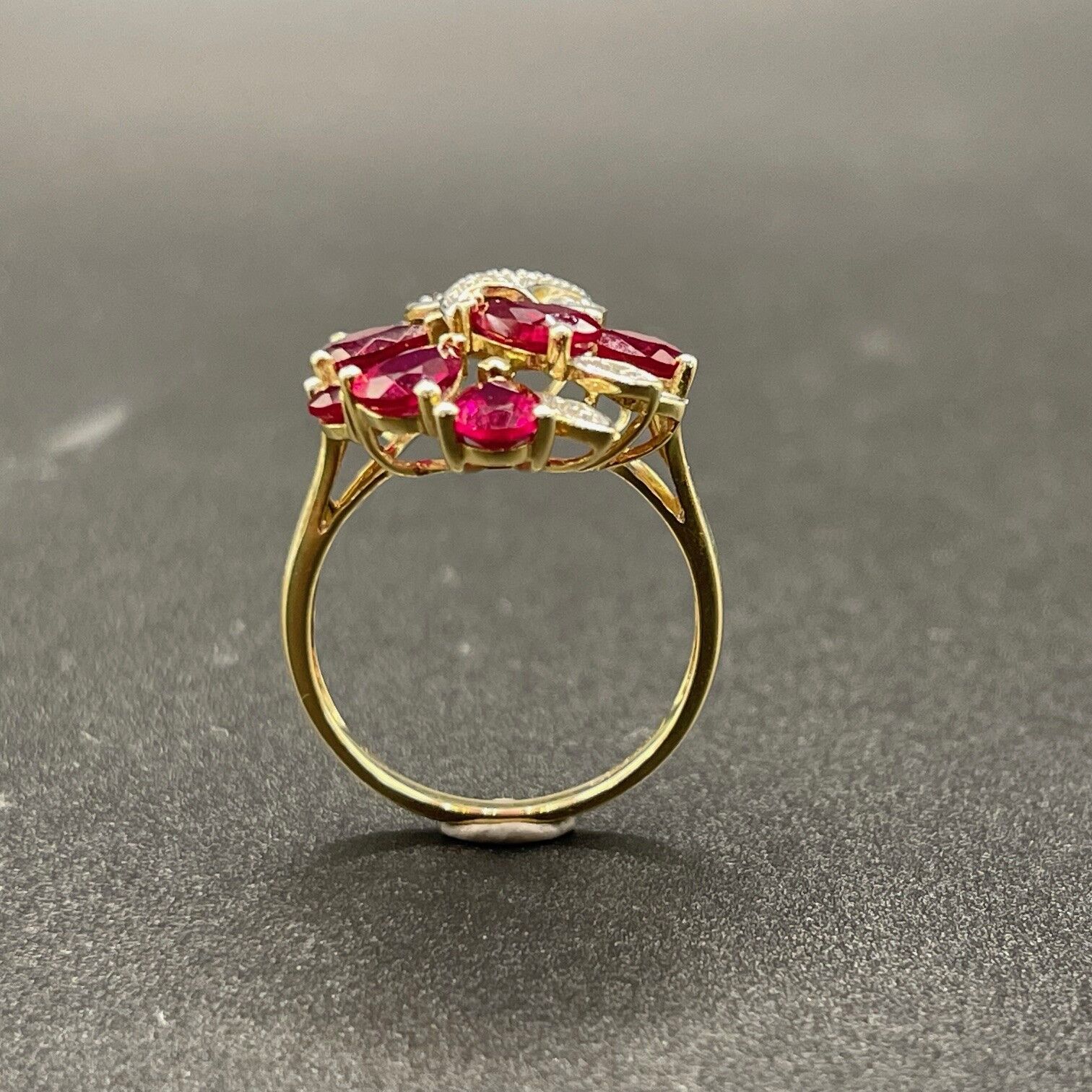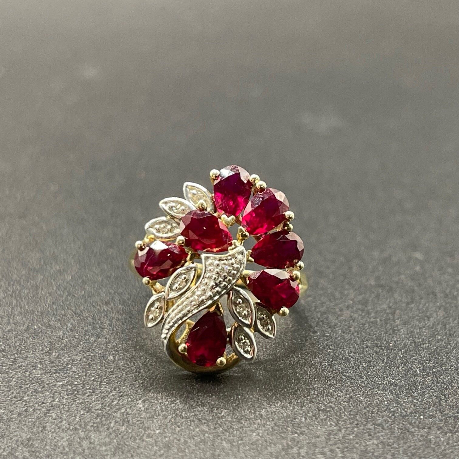 Ladies 9ct Yellow Gold Red Gemstone & Diamond Ring