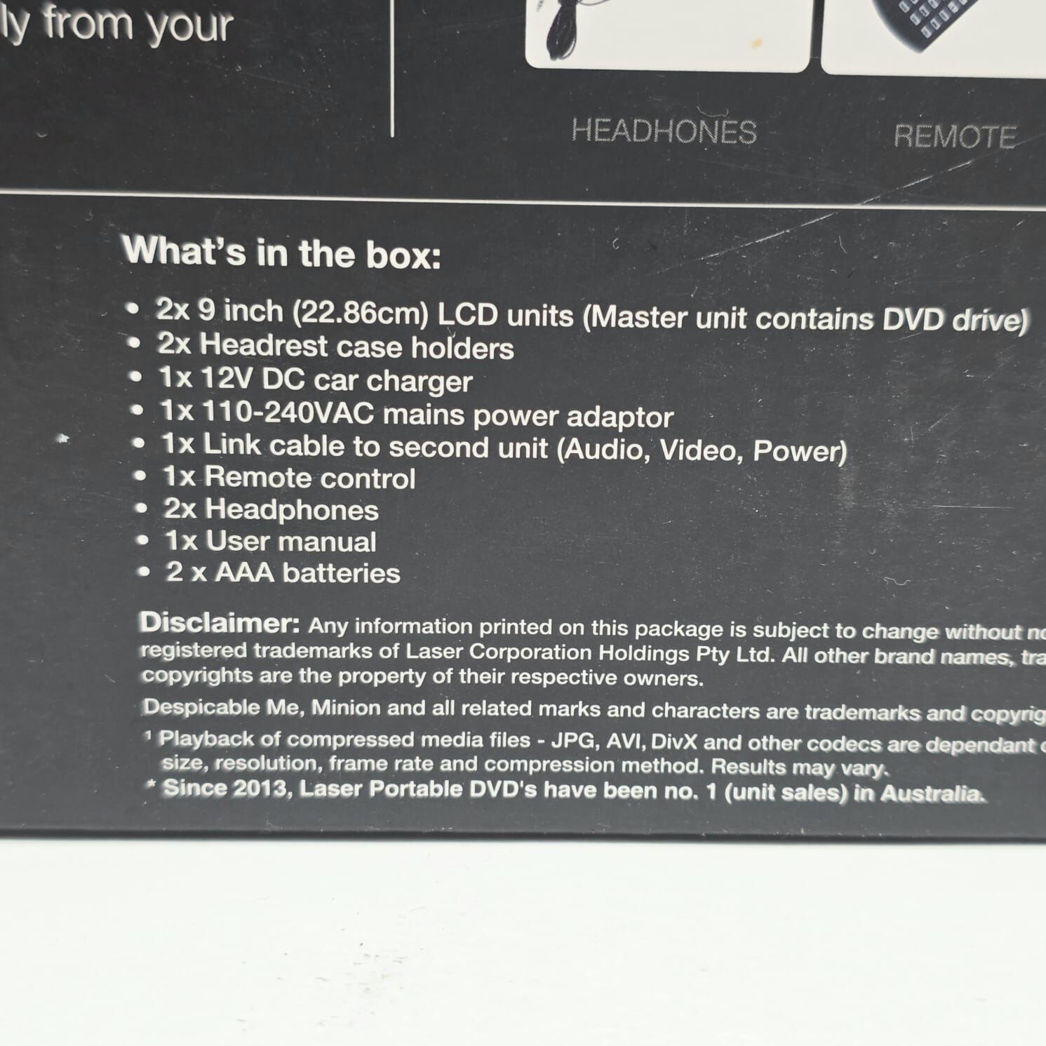 1 NEW UNUSED AND 2ND DVD PLAYER USED. MISSING REMOTE AND A PAIR OF HEADPHONES.