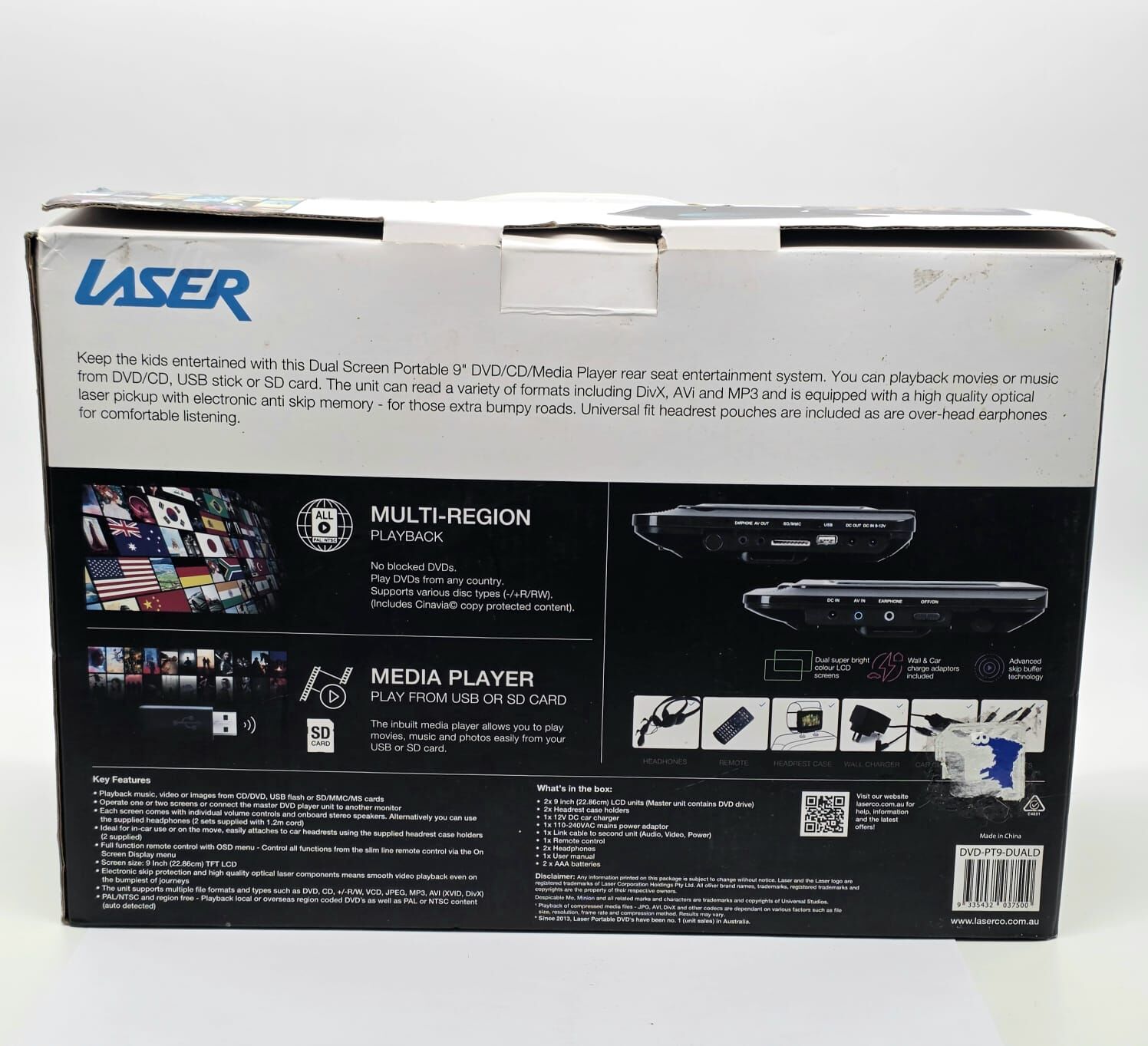 Ideal for long road trips, the Laser 9-inch Dual Screen Portable DVD Player with car headrest mount lets you keep your passengers entertained with their favourite movies or TV series.