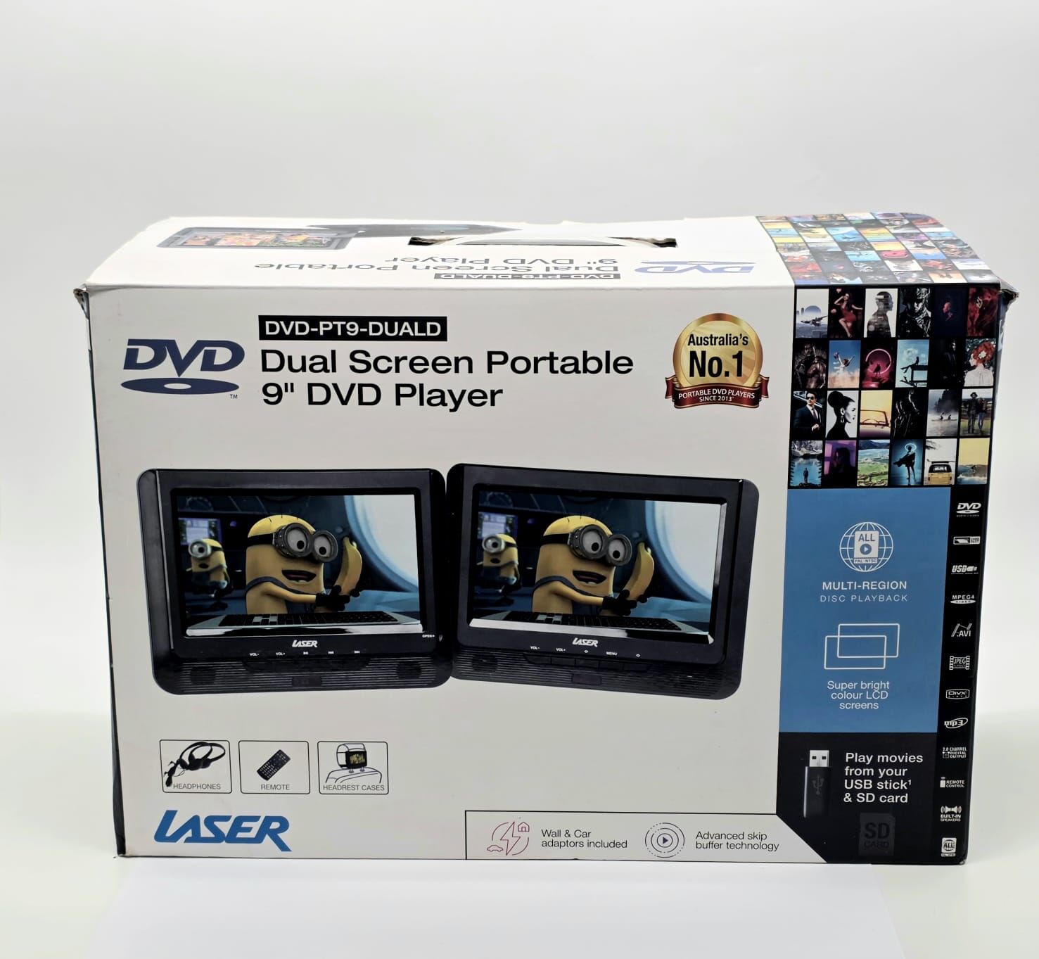 Laser 9 Inch Dual Screen Portable DVD Player DVD-PT9-DUALD