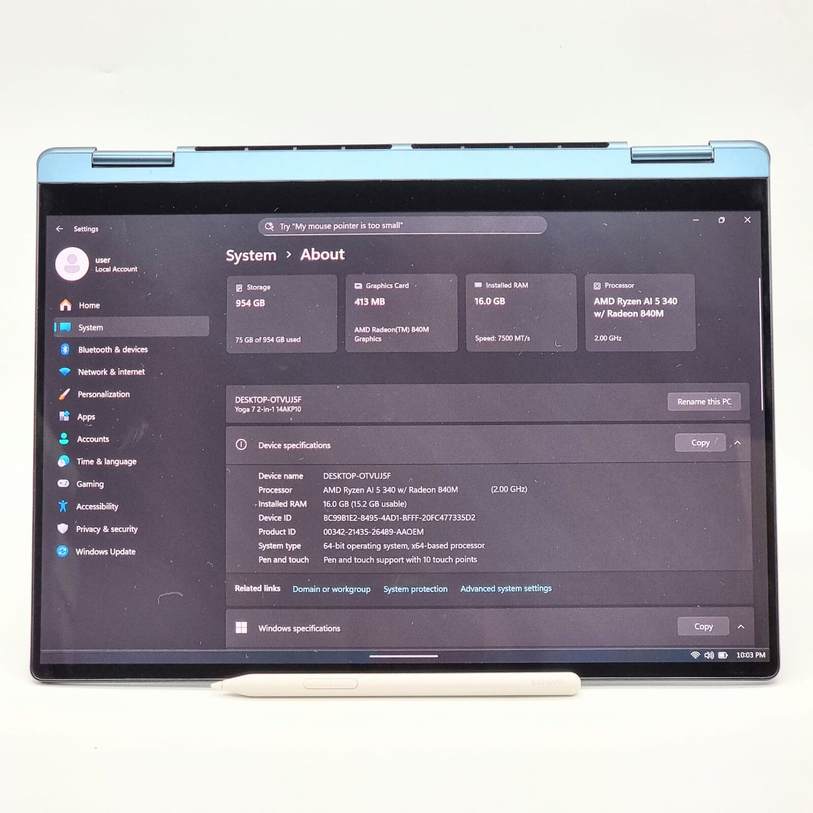 - AMD Ryzen AI 5 340 hexacore CPU (2.0GHz base) for AI-enhanced efficiency