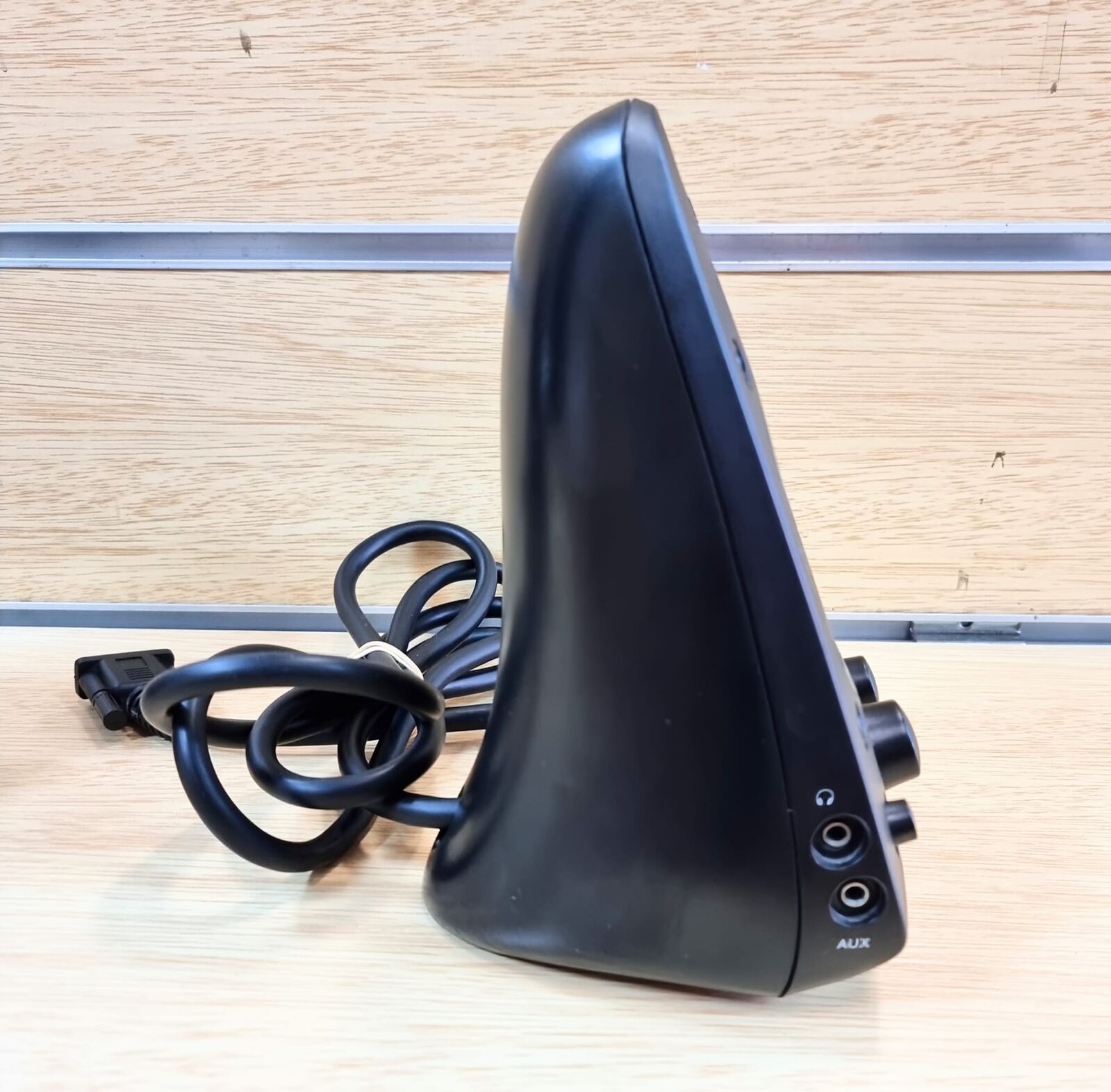 - Integrated controls for volume and bass