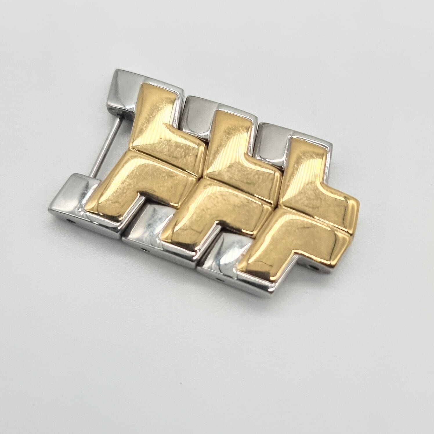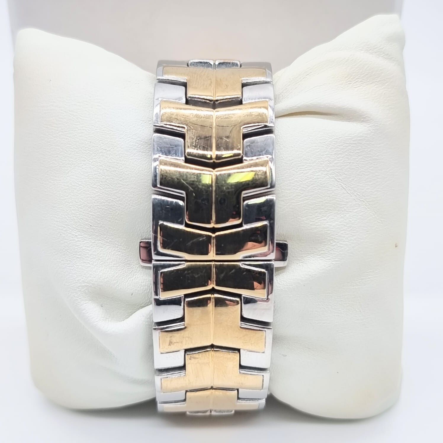 - Two-Tone Luxury: A stunning contrast of polished silver and gold-tone stainless steel