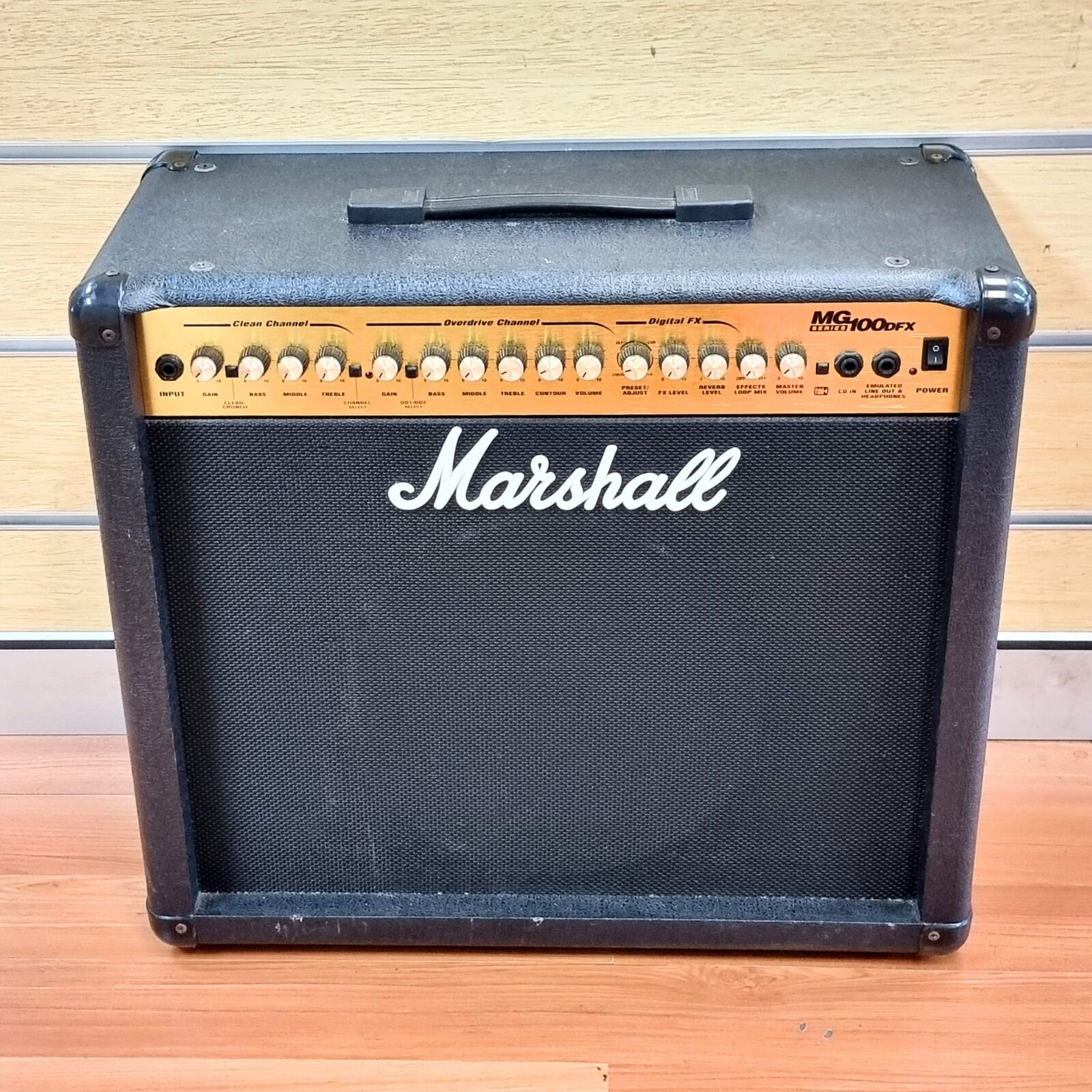 The Marshall MG100DFX is a versatile and powerful guitar amplifier designed to deliver a wide range of tones. With its 100 watts of power and 12-inch speaker, it offers a robust sound that can be heard in various settings, from small gigs to home practice.