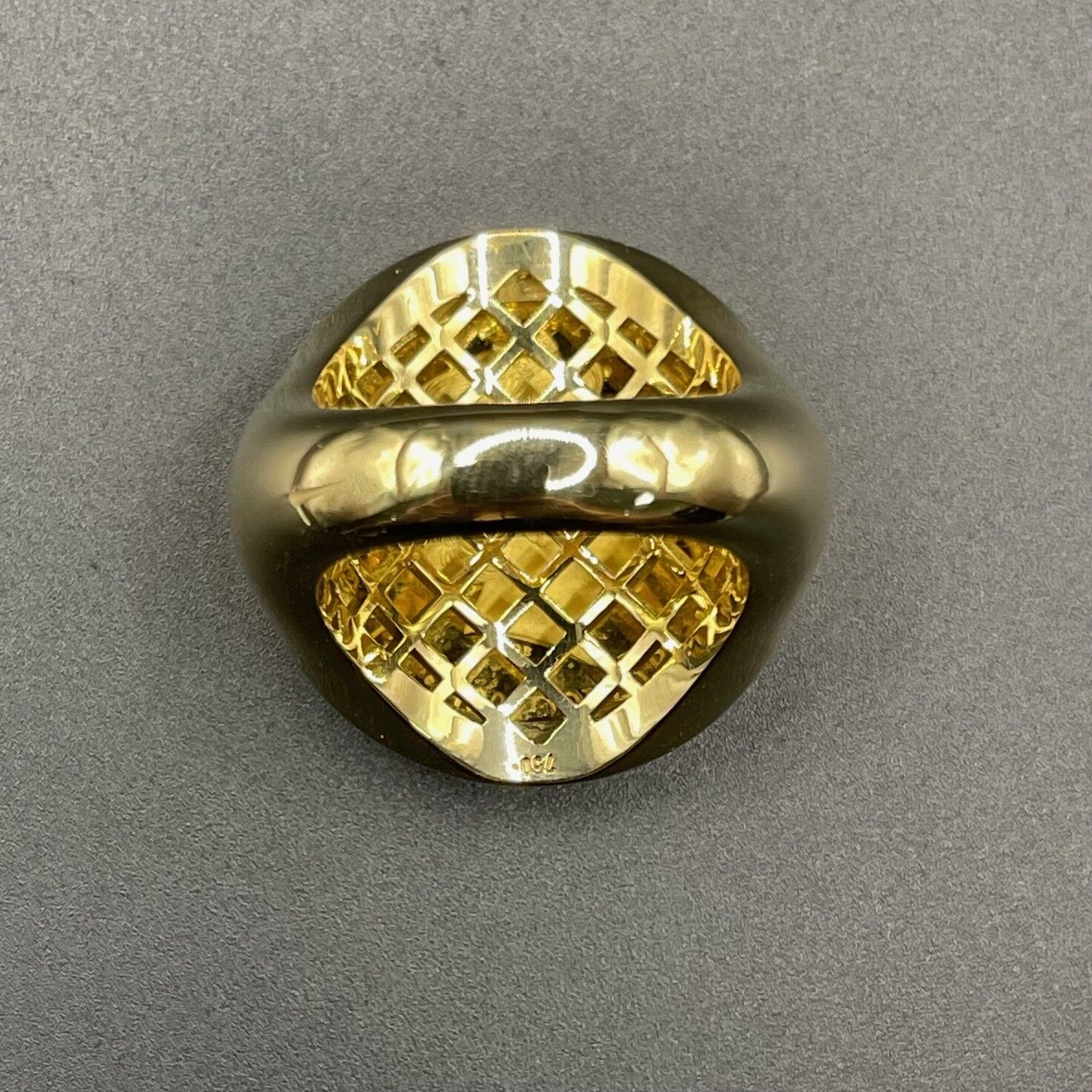 Contemporary and sophisticated, this handsome ring is sure to make a bold statement. Made from polished 18ct yellow gold with pattern detail, this classic ring is a refined and timeless choice.