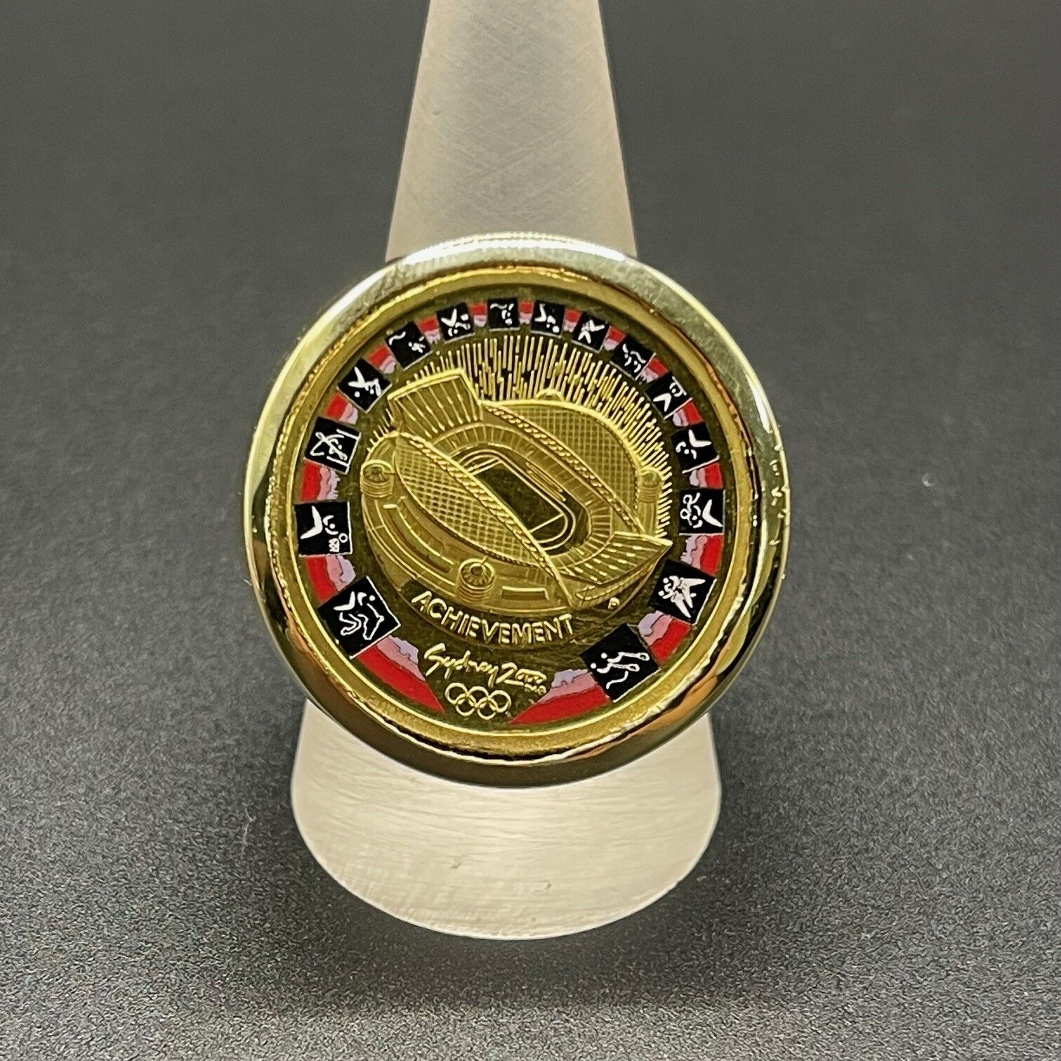 Mens 18ct Yellow Gold Ring 2000 Olympic Achievment $100 Coin Ring