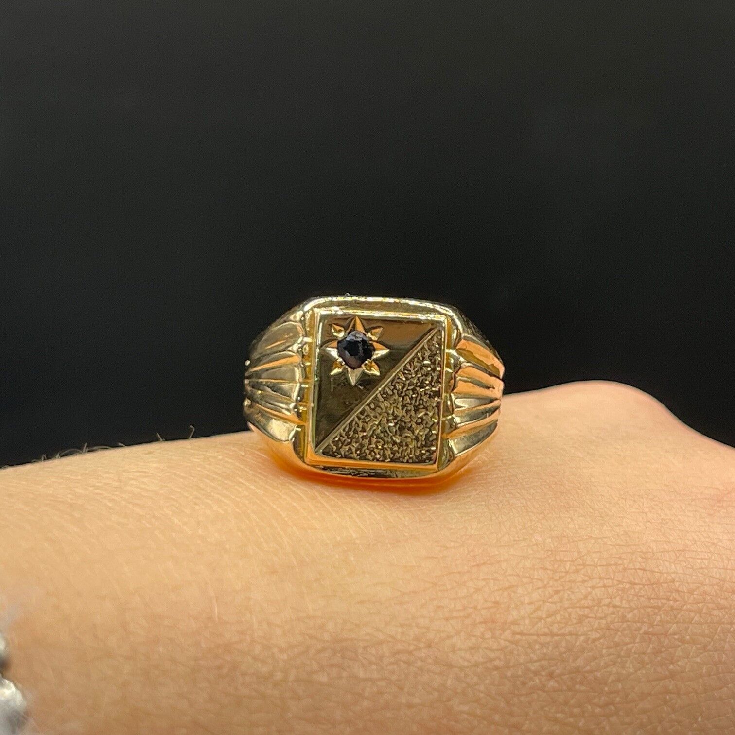 Mens 18ct Yellow Gold Sapphire Signet Ring